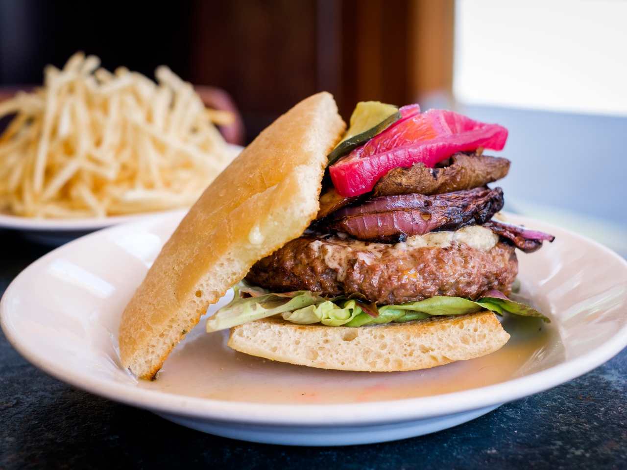 "The burger at Zuni (only available at lunch) comes with pickled onions, aioli, lettuce, and sweet housemade pickles on rosemary focaccia. Left alone, this burger is already so good that we don’t even think of it as a burger as much as the answer to the meaning of life—but if you add cheddar cheese and heirloom tomato (available seasonally), it’s somehow even better. Also, make sure to order extra aioli for dipping the haybale side of fries into." - julia chen 1, lani conway, ricky rodriguez, patrick wong