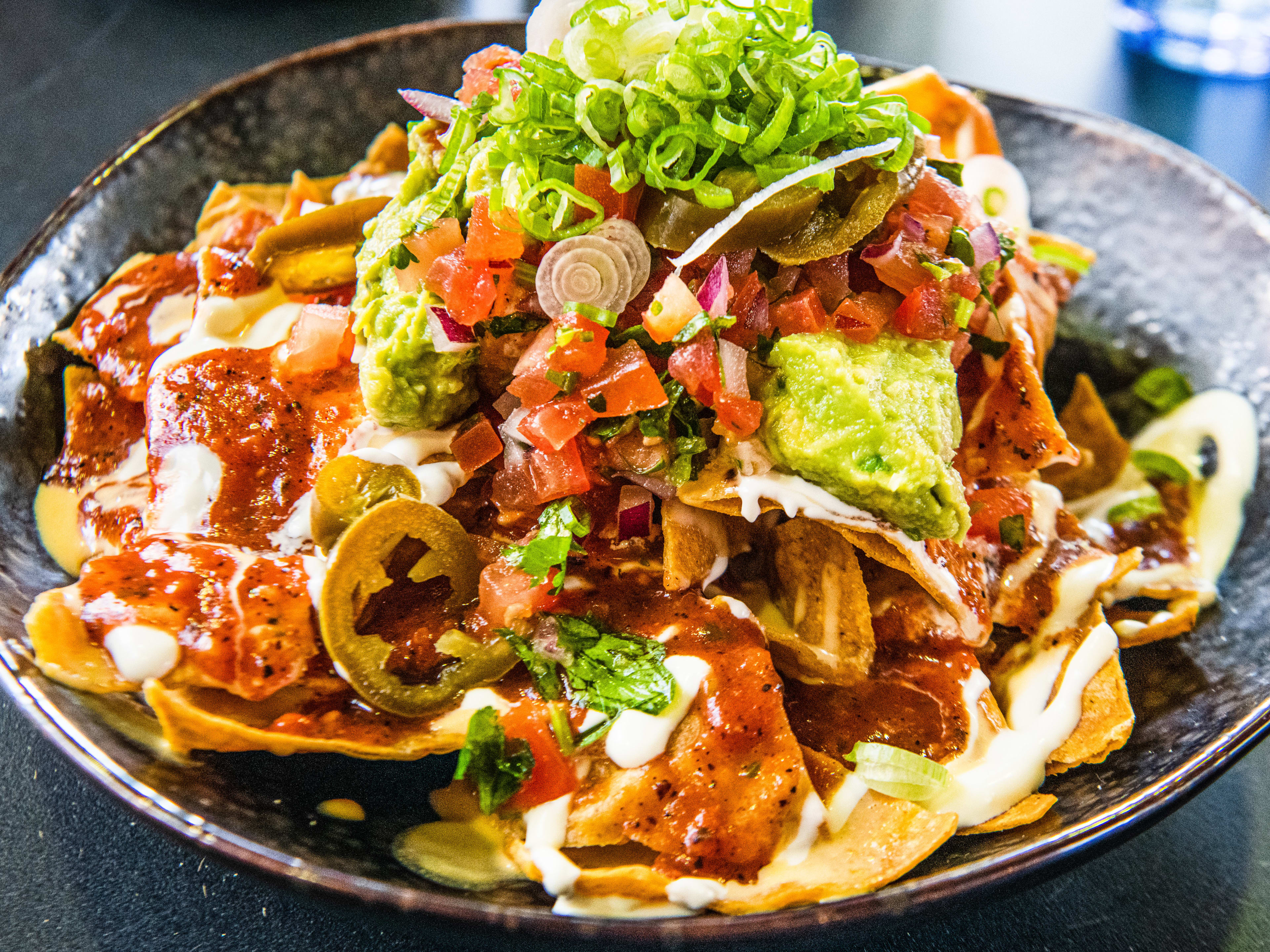 "Caldera is a Mexican-inspired spot in Hackney that we could definitely nap in. It draws you in for “just a few to pick at” totopos with well-seasoned guacamole, but keeps you ordering with corn kernels with chipotle aioli, and before you know it you’re wrist deep in a bowl of nachos. And these are really good nachos. Well-salted tortilla chips, fresh guacamole with the right chunk-to-smooth ratio, and an abundance of green toppings like spring onion, large jalapeños, and coriander. This is just a really pleasant spot in which to lounge, nestled between rows of empty chipotle pepper cans and propped up on calavera-print cushions. Then you can weigh up your post-nachos options—namely, crispy pork belly tacos and sea bass ceviche. " - Sinéad Cranna