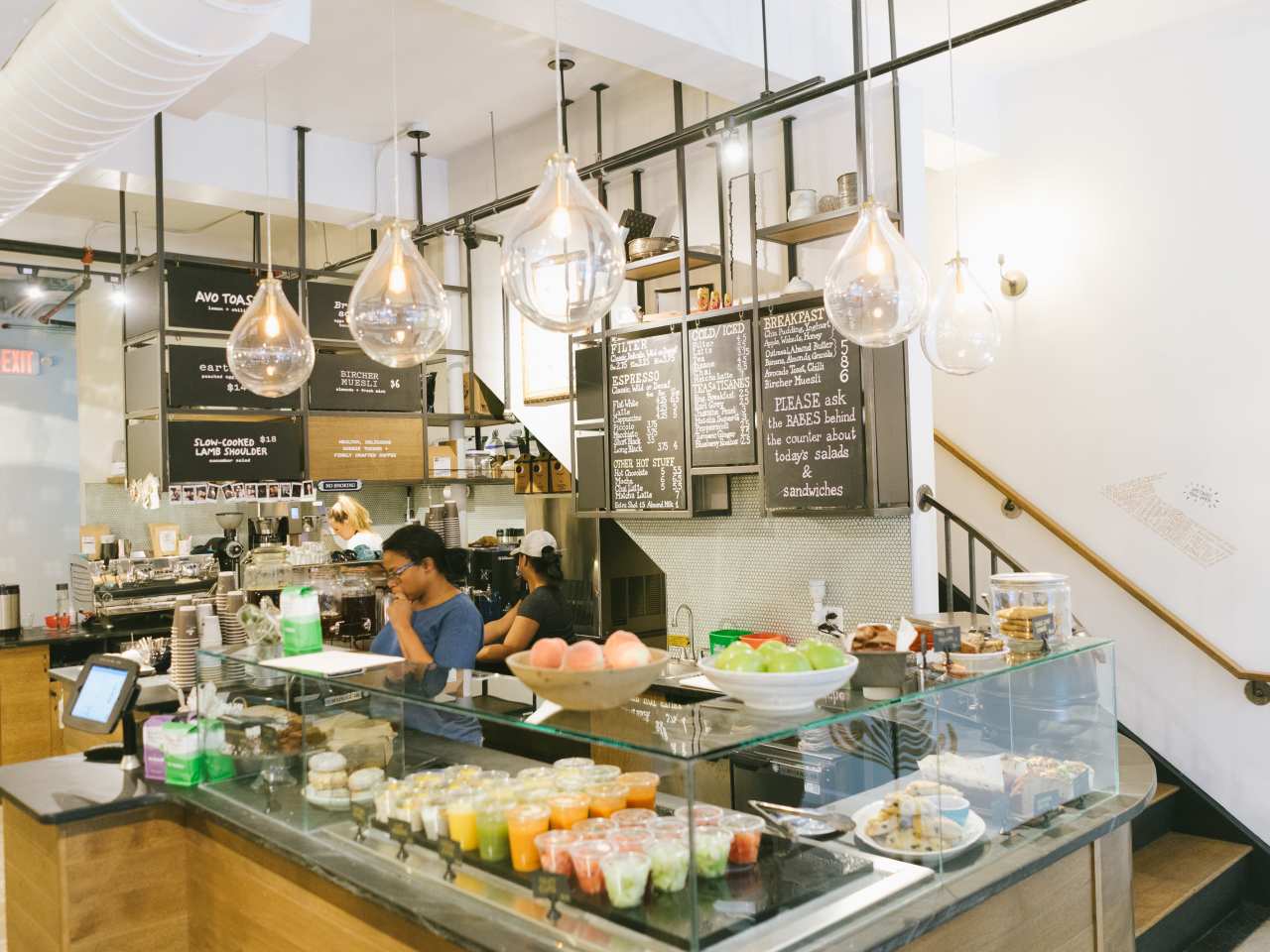 "Taylor Street is a chain from London with ties to Australia. So, yes, you can get a flat white and some avocado toast here, but you can also get a grain bowl or some lamb with cucumber salad. Up a set of stairs there’s a mezzanine with a decent amount of seating, and the whole place has relaxing, downtown vibes. There’s even a disco ball. We don’t know why it’s there, but maybe it subconsciously reduces the stress levels of Midtown office folk." - bryan kim