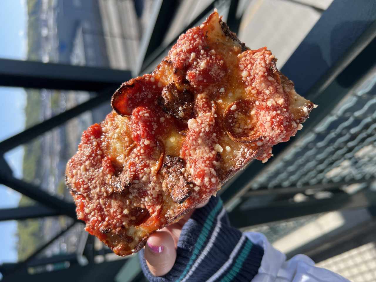 "Kissd Slice Grab some Detroit-style squares at Moto, which we’re pleased to report do live up to the hype that once prompted months-long waitlists at their West Seattle location. The sourdough crust has a great tang, pepperoni cups are curled with charred rims, and lacy cheese edges make up for a kind-of-soggy bottom. As great as these pies are, lines are often unreasonably long—show up at least a half-hour before the game starts if you’re set on a slice. Moto Swirl Moto’s soft serve operation is right next to their pizza counter, making it convenient to grab a huge cup as Part Two of a sausage-topped slab. They specialize in Flavor Burst—imagine a regular soft serve machine with artificial syrups pumped into the ridges, causing, well, bursts of flavor. You get it. Anyway, there's nothing quite like custardy cold vanilla with a karate chop of blue raspberry essence. We haven’t been here yet, but want you to know this spot exists." - Team Infatuation