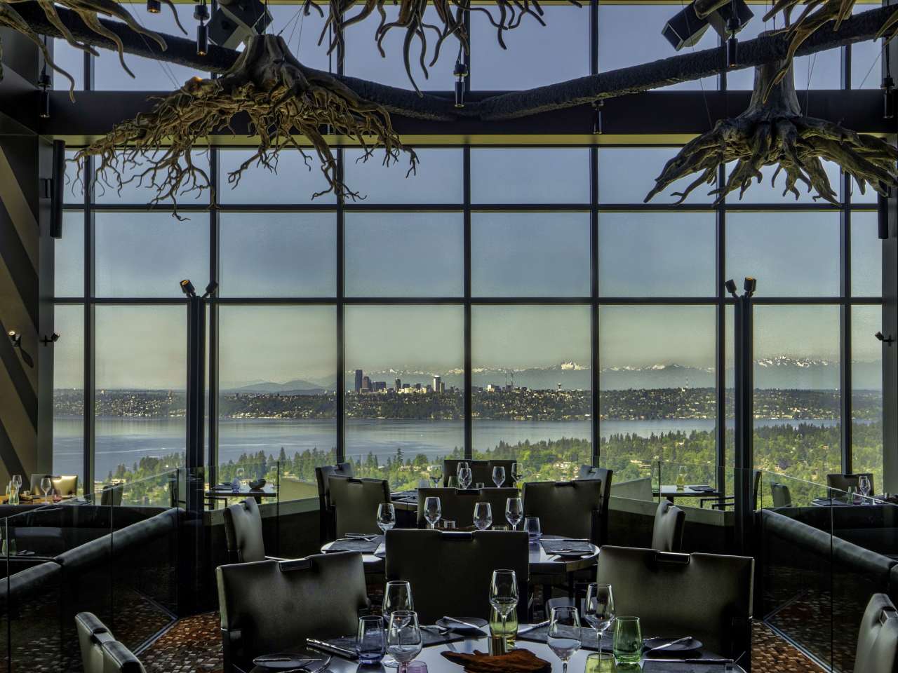"What do you get when you cross a 31st-floor view of Downtown Bellevue with an abundance of Pat LaFrieda beef and cocktails featuring “mixed berry air?” Welcome to Ascend, the Seattle area's most stylish steakhouse—which could use more substance. Unless you run casual shopping errands at The Bravern or your boss is picking up the check, it’s best to limit your exposure to this elitist amusement park. Ascend mainly excels in lounge-bound snacks and drinks. From leather chair fortresses, you can soak in the skyline and frenetic chatter, guzzle coupes of pear-sweetened Grey Goose, and double-fist spicy tuna handrolls and snooty-but-solid riffs on deviled eggs. Call it a day after that, because a full dinner here is ultimately disappointing, especially if you get seated in Ascend’s soulless back room. Starters are miniature, bland, or both. Steaks can’t hold a candle to Seattle’s repertoire. And then there’s dessert. Ascend’s sweets are whimsical art projects, and the presentation is certainly admirable—until you realize that the edible forested microcosm you paid $22 for is just chocolate pudding. You really want an expensive elevator ride that badly? Go to the Space Needle. Food Rundown Nitamago Deviled Eggs Catapult us toward a window sofa with these deviled eggs and we’d never leave—only available in the lounge, these decadent vehicles for bacon jam and whipped yolk taste good chased by a cocktail. photo credit: Ascend Prime Steak & Sushi Spicy Tuna & Prosciutto Handroll If consuming sushi at a steakhouse is important to you, this pleasant (and thoroughly spicy) handroll belongs on your plate. A bundle of buttery prosciutto adds a welcome dose of pork—we’re just bummed there isn’t more throughout the cone. photo credit: Makena Yee King Salmon & Ikura Sushi Tacos The fish inside this thing is great, but pairing a wafer-crisp wonton shell with a cumbersome sheet of nori in the same handheld item makes it a mess to bite. To top it off, the ikura is marinated far beyond recognition. We never met a more skippable appetizer. photo credit: Ascend Prime Steak & Sushi Pork Belly No crimes are being committed, but shelling out $27 for a few thin slices of broiled pork belly and exactly three thimble-sized agnolotti (with pasta sheets rolled one notch too thick at that) is not particularly satisfying. photo credit: Ascend Prime Steak & Sushi Steak The steaks don’t have much of a seared crust going on, and the cheaper cuts tend to suffer from a lack of charisma. Order some luxe marbled wagyu, or keep it moving. photo credit: Ascend Prime Steak & Sushi Potato Puree & Butter No need for boring truffle mac when you have a silky puree duo of yukon golds and purple okinawan sweets. Truly the best route to take for dinner here would be to go in on some handrolls and a personal pile of mashed potatoes. photo credit: Makena Yee Magic Mushroom Essentially, a dirt cup for grown adults who can part with $22 for a dirt cup. photo credit: Ascend Prime Steak & Sushi" - Aimee Rizzo