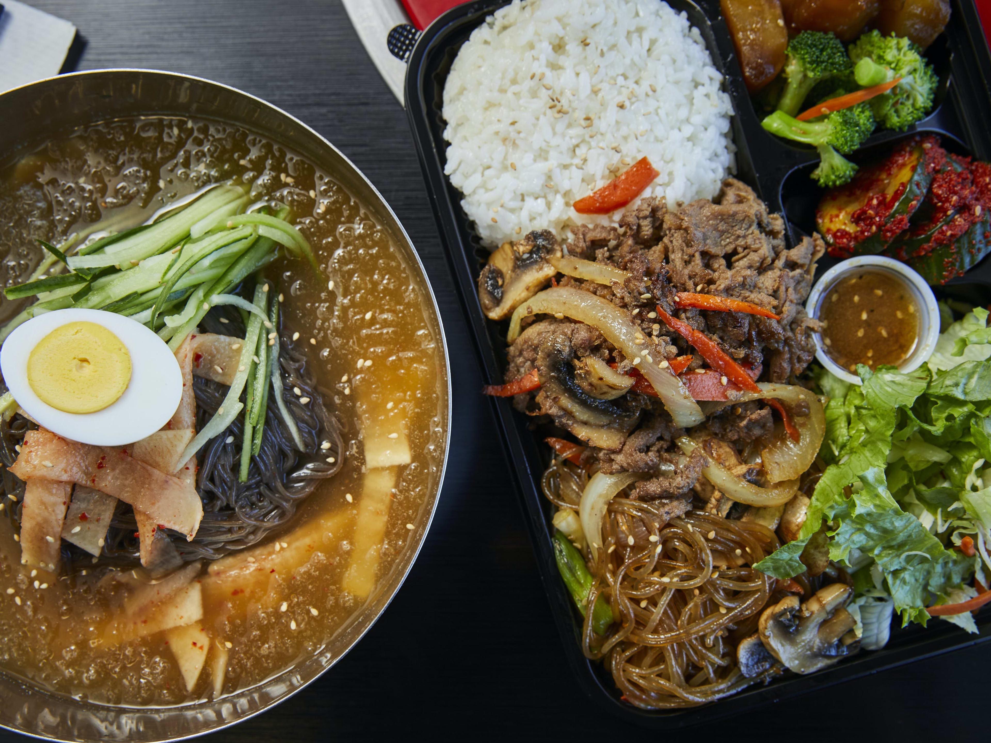 "I am not going to say a single thing about the name of this place, but I will say this: the “Umma’s Lunchbox” deal kills. Choose from fried tofu, barbecue chicken, spicy pork, and bulgogi, and the generous leftovers of rice, japchae, and banchan will make a great midnight snack. Table barbecue here is pretty simple - mostly the hits like pork ribs and short ribs, plus some rosemary and garlic pork belly. What you really want to order is the super refreshing mul-naengmyeon (cold noodle, as it’s listed on the menu) and the bibim-naengmyeon (spicy cold noodle). They’re both hot-weather dishes that are sweet, spicy, and thirst-quenching. And if there’s no ice cube in your silver bowl, ask for some to make the broth extra frosty." - dakota kim
