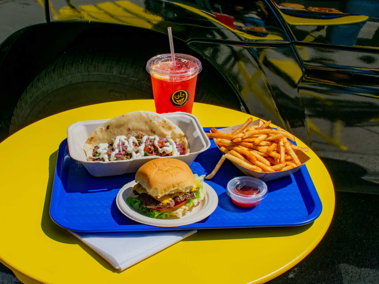 "After your first bite into Nansense’s smashburger, you’ll wonder why kabab patties haven't already taken over the world. This casual Afghan spot uses meat that’s mixed with diced onions, tomatoes, and herbs, so each bite is super moist and full of coriander and cumin flavor. They also make snacks like crispy bolani and the Taco-bab—a chapli kabab wrapped in a tortilla and topped with tart salata and a creamy chutney mayo. There’s a small indoor dining room and a few highlighter yellow tables outside, perfect for a quick lunch or dinner. Food Rundown Smash Burger Each element of the chapli kabab burger works in harmony. The beef patty has notes of caramelization from the minced onions, and there’s a great balance between its crisp edges and juicy center. The slice of american cheese, chutney mayo, and fluffy potato bun bring everything together for one of the better burgers we’ve had recently. Masala Fries These shoestring fries are crispy yet pliable, which is great for dipping into the accompanying pot of spicy homemade ketchup. The spice dusting has a smidge of heat but feels well-rounded. Taco-Bab Nansense uses the same chapli kabab and chutney mayo from their burgers in this large, crispy taco, but it gets topped with a tart mixture of finely diced tomatoes and cucumber. The result is bright, creamy, and a fun texture mix in each bite. Get it if you have a big group and want to see the full range of the menu." - Anne Cruz