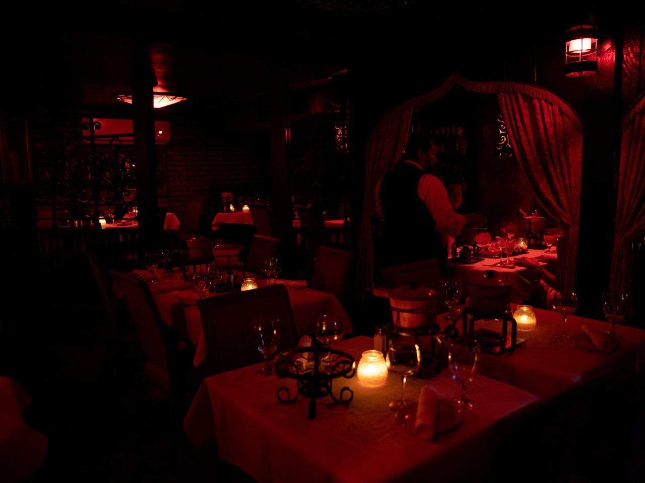 "Any restaurant where the servers carry around flashlights is dark. And that’s what happens at this circa-1965 fondue spot in Lincoln Park. Besides the flashlights and the little blue flames from the fondue pots, the main sources of light at Geja’s are the glowing red bulbs scattered throughout. If you’ve ever wanted to combine eating with being too scared to have your phone light up and ruin the campy romantic mood, Chicago’s darkest restaurant is the place to do it." - veda kilaru, john ringor, adrian kane