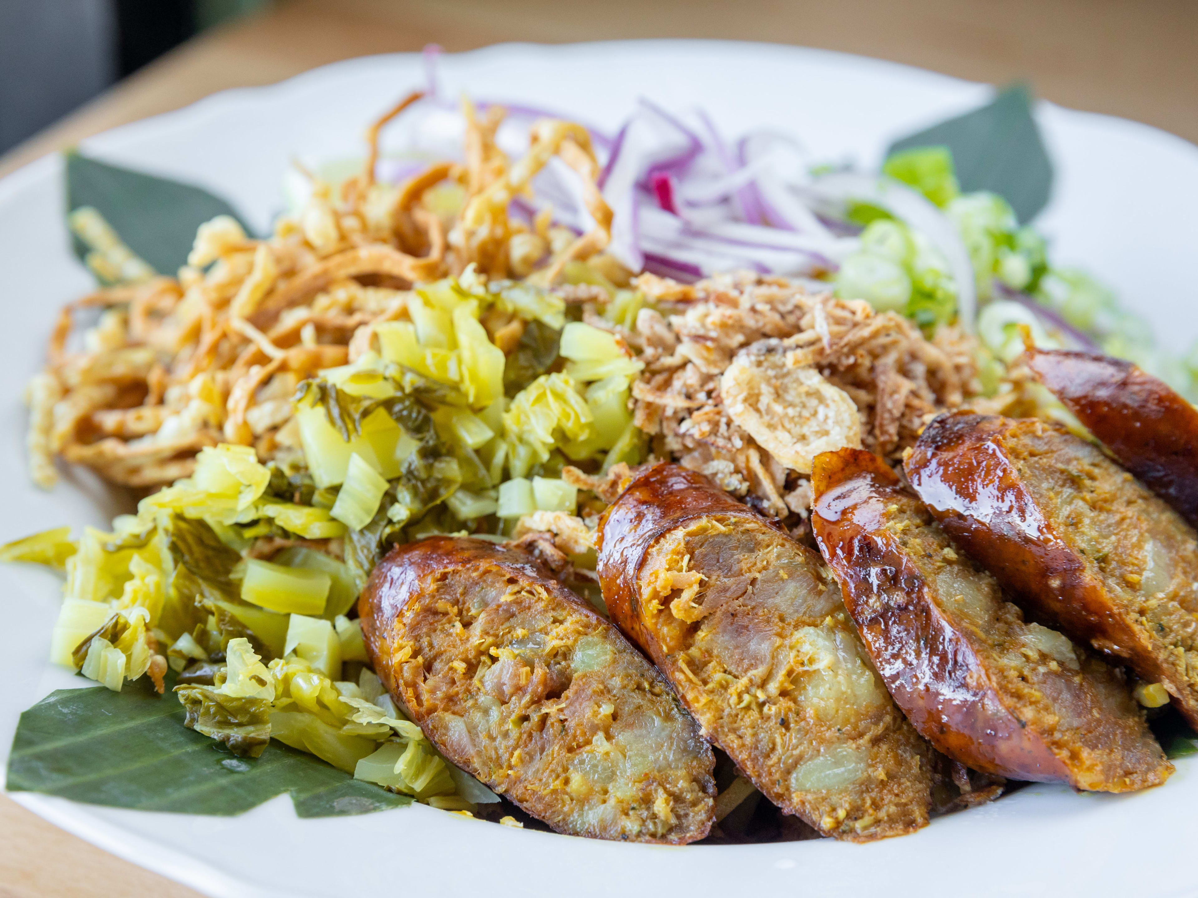 "Long Beach has tons of great Thai spots, from the bare-bones Tasty Food to Go to the more upscale Thai District, but none of them are quite like Chiang Rai, a neon-hued Eastside restaurant that specializes in less commonly seen Northern Thai dishes. Make a beeline for anything in the “Chiang Rai Local Food” section of the menu, including fragrant sai oua sausage with a fiery green chile dip, dry-style khao soi noodles, and a vivid sweet-salty yellow curry that comes with fried chicken and flaky roti bread for dipping. And if you decide you just want to stay home and order takeout, Chiang Rai has you covered, too—the kitchen puts as much love into delivery staples like pad thai and pineapple fried rice as they do their Northern-style beef larb." - garrett snyder