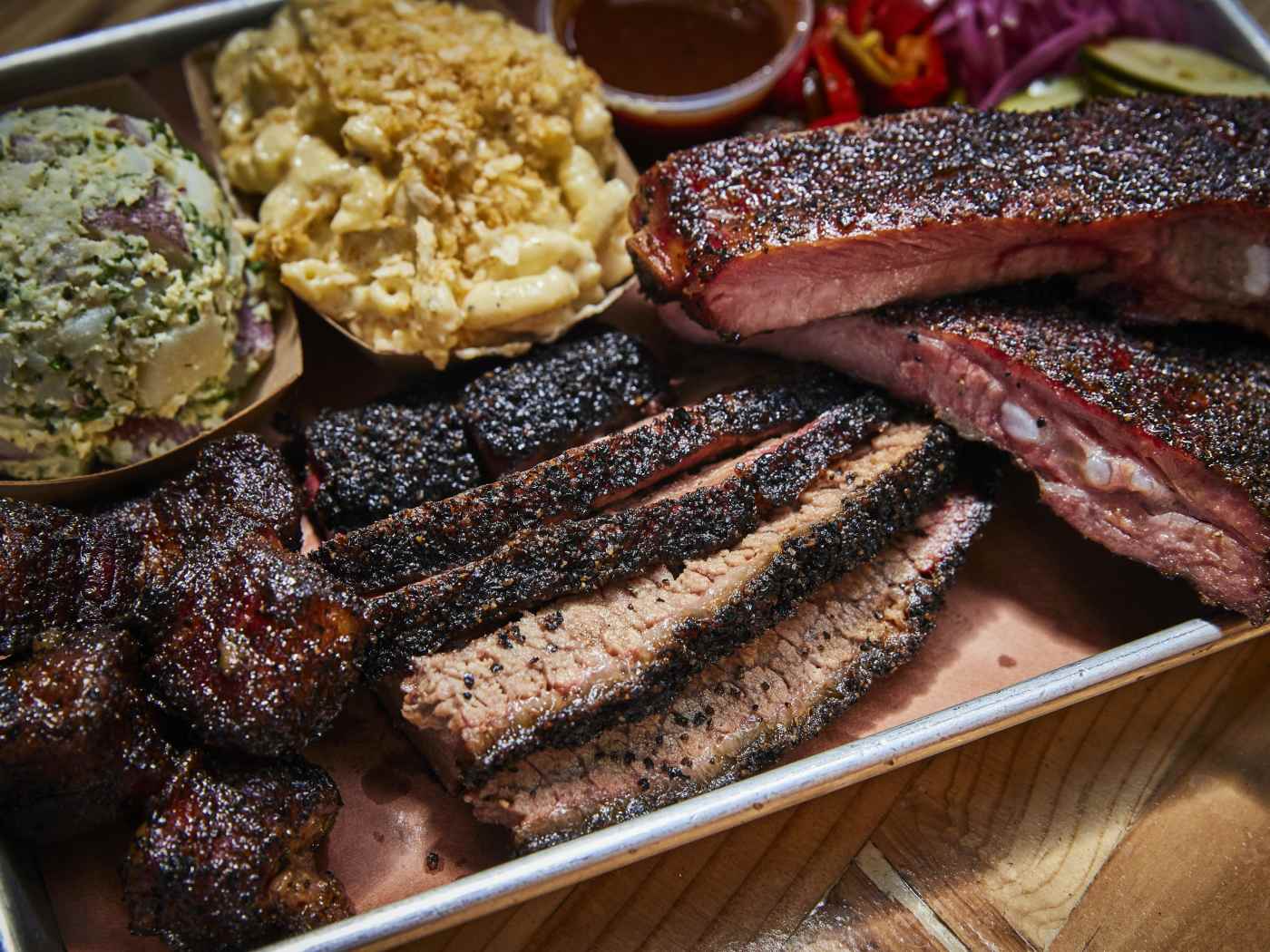 "California’s central coast has a rich barbecue tradition and places like Maple Block, Slab, and Bludso’s continue to smoke delicious meats. But selling the idea of great barbecue in LA to anyone outside of LA has always been met with heavy eye rolls. The arrival of Moo’s in Lincoln Heights, however, changed everything. And that’s because this former pop-up isn’t just home to the best barbecue in LA, it’s home to some of the best we’ve eaten anywhere. This is Texas-style barbecue—meaning brisket is king—but what makes Moo’s even more special is how intricately owners Michelle and Andrew Muñoz have incorporated their East LA roots into things beyond smoked meat. Think side dishes like creamy, smoky esquites, dill-heavy red potato salad, and a tres leches bread pudding we’d rank among the best desserts in the city. " - brant cox, nikko duren, arden shore, sylvio martins