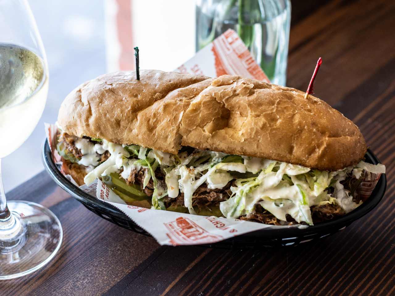 "The po’boys at Uptown Sports Club in East Austin mean business. These are serious, exemplary sandwiches, all made with Leidenheimer’s French bread imported from New Orleans. Both the fried green tomato and the fried shrimp sandwiches rank up there in our Po’Boys We’d Like To Get To Know Better list. But the one you should never fail to order is the roast beef po’boy, a gloriously messy affair with beef doused in a debris gravy made with Franklin Barbecue’s legendary chopped brisket. You will need extra napkins. You will not want to share." - nicolai mccrary, matthew jacobs, raphael brion