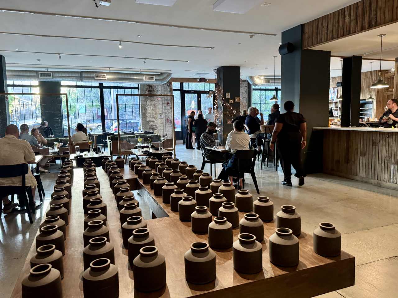 "Honeysuckle in Spring Garden blends sleek and sophisticated with decadence and comfort, like the $65 burger decked out in gold flakes, truffle, and caviar. Unlike their old West Philly digs, this version has lots of seating. But it still has personal touches like an MF Doom action figure above the bar, and you'll hear soul music that will make you think you stumbled into your aunt's house. Everyone's diving into bowls of Afrocentric dishes like ramp-wrapped red drum with scallop foam, spaghetti with crawfish tossed in a savory, umami-rich West African XO sauce, and other plates topped with produce from their Bucks County farm. Keep in mind that for now, service tends to run long (we're talking a slow marathon rather than a sprint). But you should still make a reservation ASAP. We rebooked immediately after our last drop of citrusy champagne water ice. video credit: CANDIS R. MCLEAN photo credit: CANDIS R. MCLEAN photo credit: CANDIS R. MCLEAN photo credit: CANDIS R. MCLEAN photo credit: CANDIS R. MCLEAN Pause Unmute" - Candis R. McLean