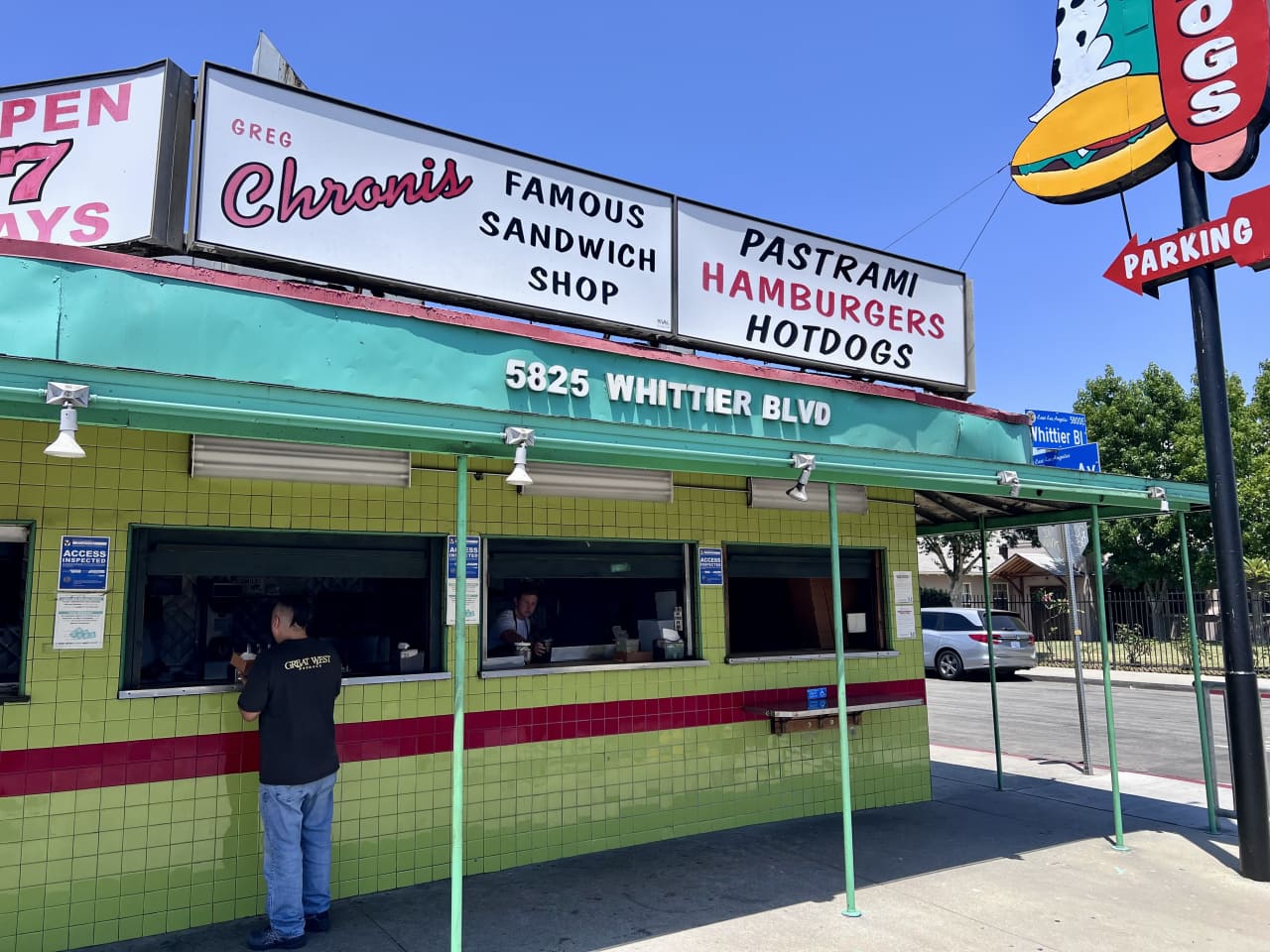 "Chronis Famous Sandwich Shop is as essentially East LA as lowriders and Cheech & Chong. This low-slung fast food stand has been family-run since the '50s and is immediately recognizable by its tall sign promising hot dogs seven days a week. The menu has every combination of burger, dogs, fries, pastrami, and chili imaginable, but the pinnacle is the flagship chili cheese dog, which slides a slice of american cheese, raw onions, and mustard under a snappy beef frank and drowns it in meaty, fine-grained chili. Throw a few pickle slices on top and savor the history. photo credit: Garrett Snyder" - Garrett Snyder