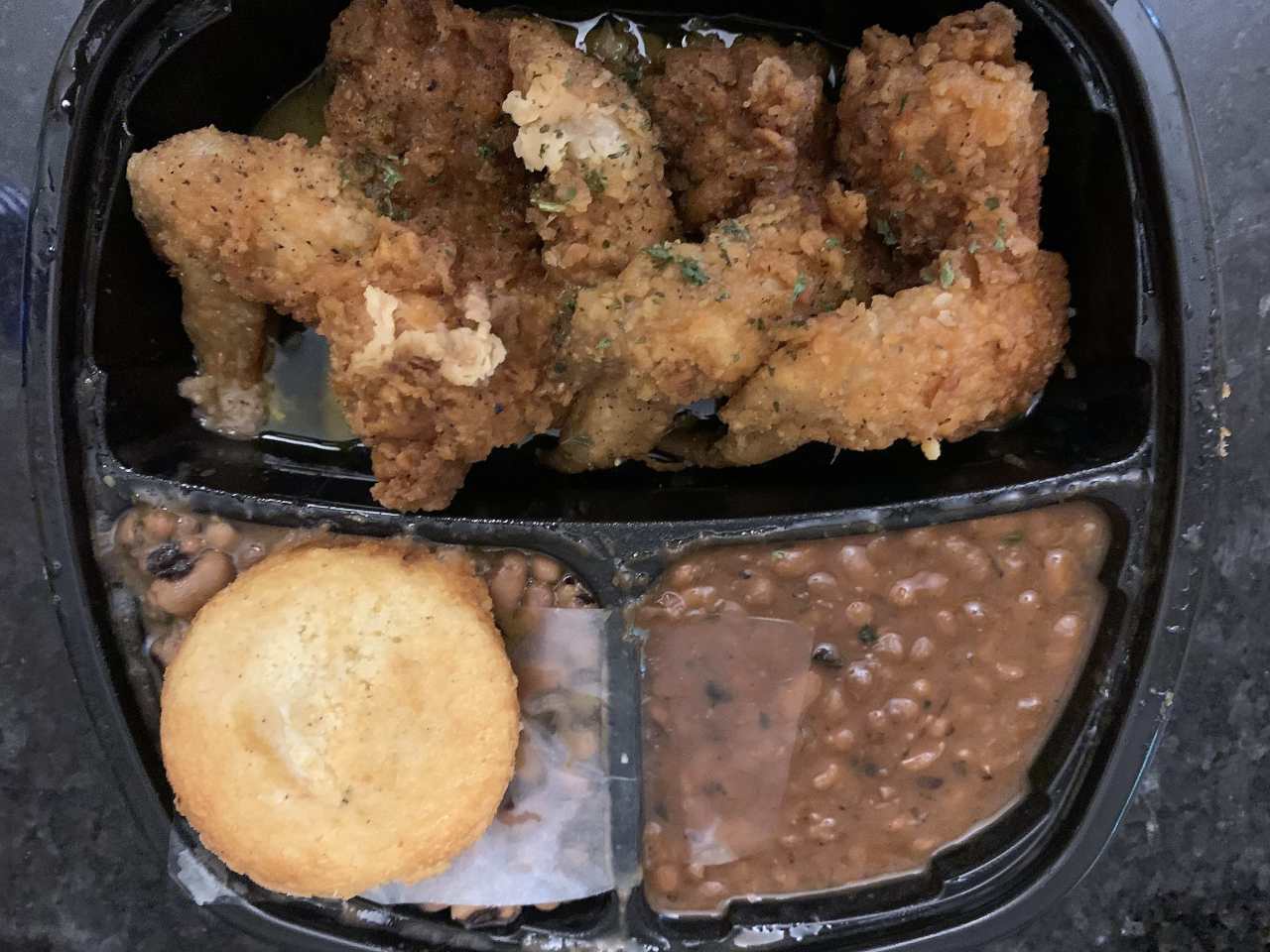"Soulbox, a fast-casual mostly takeout spot, sells boxable lunches for around $15. Get a Soul-boxable—you pick your meat option, from flavorful whole-wing chicken, to tender pork chops, and saucy ribs, along with a side and cornbread. With the exception of savory black-eyed peas and collards, many of the sides are super sweet, especially the wincingly sugary candied yams, so expect to fight off a potential sugar crash if heading back to work." - demarco williams, nina reeder, jacinta howard