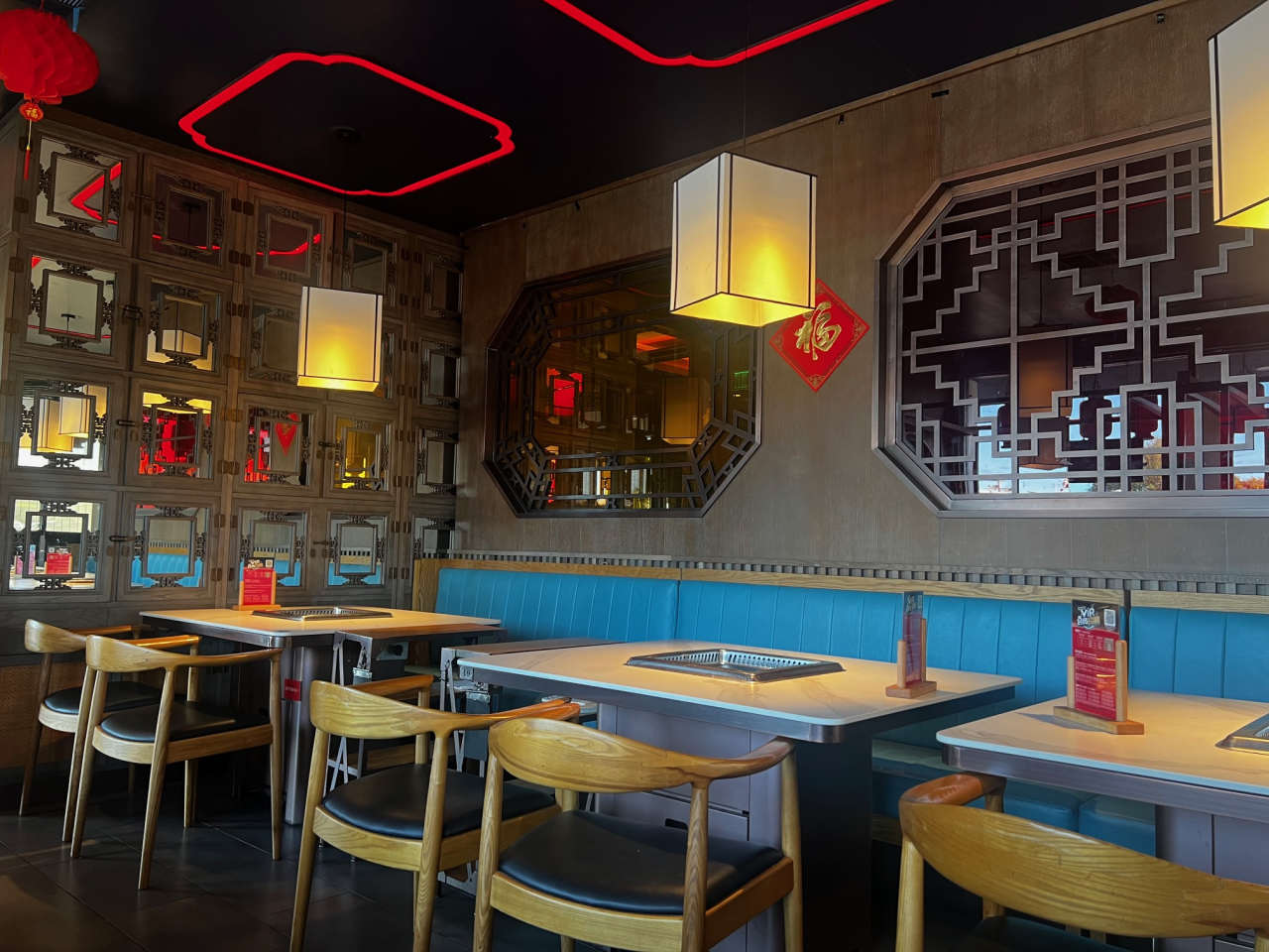 "This Convoy spot is dressed up like the set of a Chinese historical drama—if they had neon lighting and televisions playing videos about hot pot in the Han Dynasty. Diners drop sliced meats and vegetables into cauldrons that bubble with Chongqing-style spicy-and-numbing soup and milder bone broth, but the sauce bar might be the real attraction. It has nearly every condiment imaginable, as well as a buffet of sweet and savory snacks like rice crackers and a coconut pudding that slaps. All in unlimited amounts. Plus, they’ll give you hair ties, eyeglass wipes, and even toothbrushes, if you’re prone to getting messy." - Candice Woo