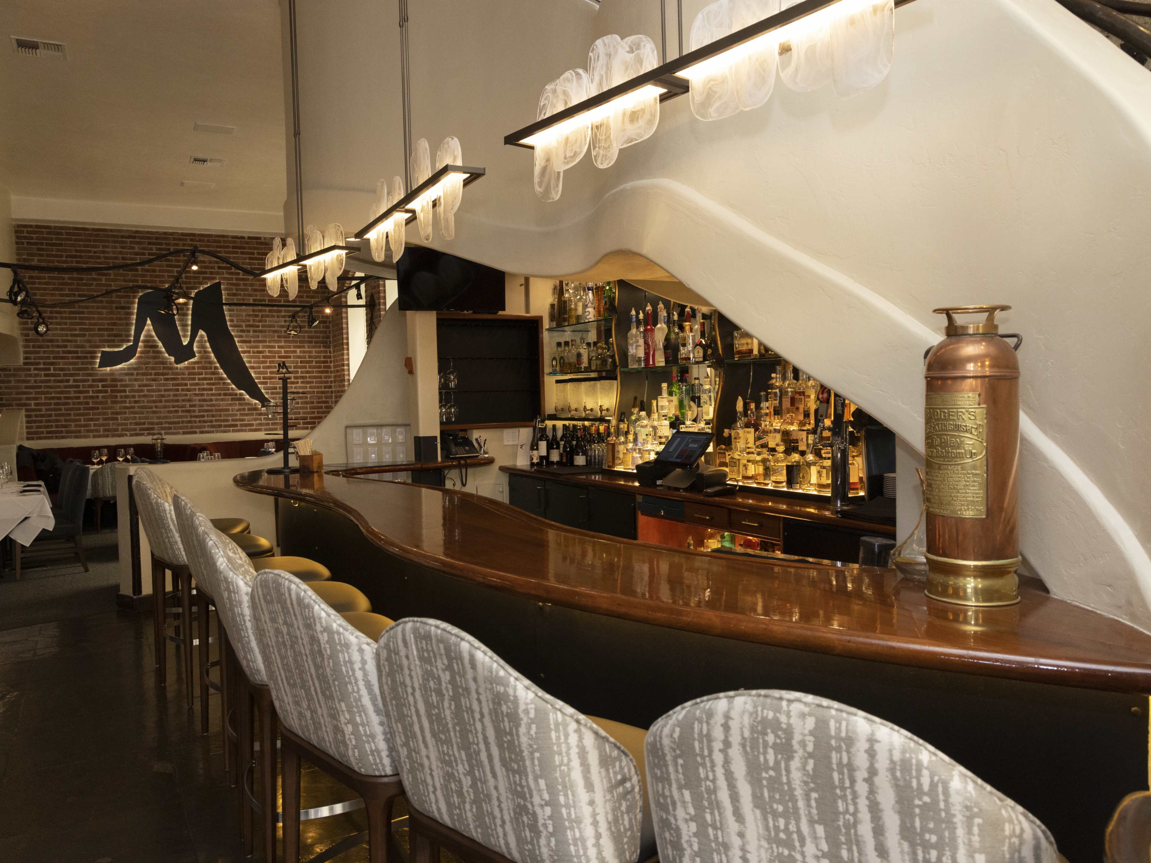 "The dining room at Montrio, located in a former firehouse, is on the formal side—tablecloths, stemware, and multiple fork sizes at each place setting–but funky overhead lamps and cloud-like ceiling sculptures keep the vibe relaxed. The food is so good that it would be worth eating in any setting. You can’t go wrong with any of the steaks, the onion soup gratinée is intensely savory and cheesy—a near-perfect execution of French onion soup—and the lentil roulade, with chestnut stuffing, mushroom jus, beets, and chive oil, showcases a kitchen which gives just as much attention to vegetarian dishes as they do to meat. For a budget-friendly treat that still feels elevated, stop in on Tuesday nights, when they offer half-priced wines." - Gabi Moskowitz