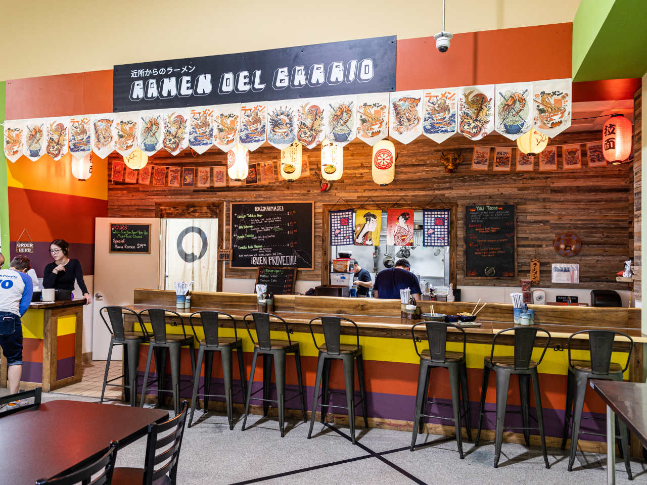 "Finding an extra $20 bill in an old coat pocket is great, but there’s something even more exciting about finding it in an unexpected place, like on a sidewalk or hiding right behind your ear. It’s how we felt when we stumbled upon Ramen Del Barrio, a Japanese-Mexican fusion ramen stall in the food court at the grocery store Hana World Market in North Austin. Located roughly between a donut shop and a makeup stand, this is home to one of the most unique (and tasty) bowls of ramen in the whole city. photo credit: Richard Casteel The dining area has all the expected sex appeal of a grocery-store food court (no kink-shaming here), but the heavy wooden accents and hanging paper lanterns make sitting at the bar here feel a bit like you’re at a small ramen shop in Tokyo—just as long as you don’t look behind you. You’re not here for the ambiance. You’re here for inventive Mexican-Japanese dishes like the ultra-savory mole tsukemen, a bright and refreshing aguachile mazemen, or charred yakitori-inspired lengua tacos, served still sizzling on the skewer on a warm corn tortilla, glazed in a sweet piloncillo tare. photo credit: Richard Casteel While you should probably start with a few yaki-tacos, the star of the menu here is the carnitas tonkotsu bowl. On paper, it reads like a taco—there’s buche and cueritos, grilled pepper, cilantro, onion, and salsa. On the table, it’s a bowl of ramen that spent its formative years in Mexico. Because under all those toppings, you’ll also find a big pile of springy ramen noodles, shoyu tare, and a rich and creamy tonkotsu broth that stands up to the best in town. Both carnitas and tonkotsu are long, labor-intensive preparations of pork. Combining them into a soup seems so obvious in retrospect, that we can’t help but wonder why it’s taken so long to come into this world. And all of a sudden, the lime wedge on the side feels like more of a final puzzle piece than the estranged role it would probably serve at an old-school ramen shop. Ramen Del Barrio isn’t the first place in Austin to test out how well Japanese and Mexican flavors blend together, but it might be the most seamless and unexpected. Maybe we’re just looking for more excuses to eat tacos, or maybe we’re just realizing that the 6,700 miles between Mexico and Japan are a lot closer than they sound. Food Rundown Yaki Tacos Think yakitori-style skewers paired with corn tortillas and salsa. The meat arrives on a skewer that you can cleanly remove before wrapping the whole thing up. Our favorite is the lengua—the beef tongue is slow-braised resulting in a pull-apart texture with just a little bite—but the pork belly is a close second. Definitely add one or two of these to your order. photo credit: Richard Casteel Carnitas Tonkotsu Ramen The broth is a fairly classic tonkotsu, made from boiled pork bones, with a rich and fatty texture. But it’s topped with everything you’d expect to find on a taco—onions, cilantro, charred serrano, a lime wedge, and a handful of carnitas, blending shoulder meat, stomach, and skin for a fun combination of textures. We recommend ordering a side of salsa macha to go with it. photo credit: Richard Casteel Mole Tsukemen Most tsukemen we’ve had pairs thick and chewy noodles with ultra-rich, salty dipping broth, and Ramen Del Barrio’s is no exception. Except here, instead of a pungent, fishy broth, it’s a thick and savory mole that’s almost too rich to eat on its own. This is a great dish for mole lovers, but might be a little too much of a good thing for the casual enthusiast. photo credit: Richard Casteel" - Nicolai McCrary