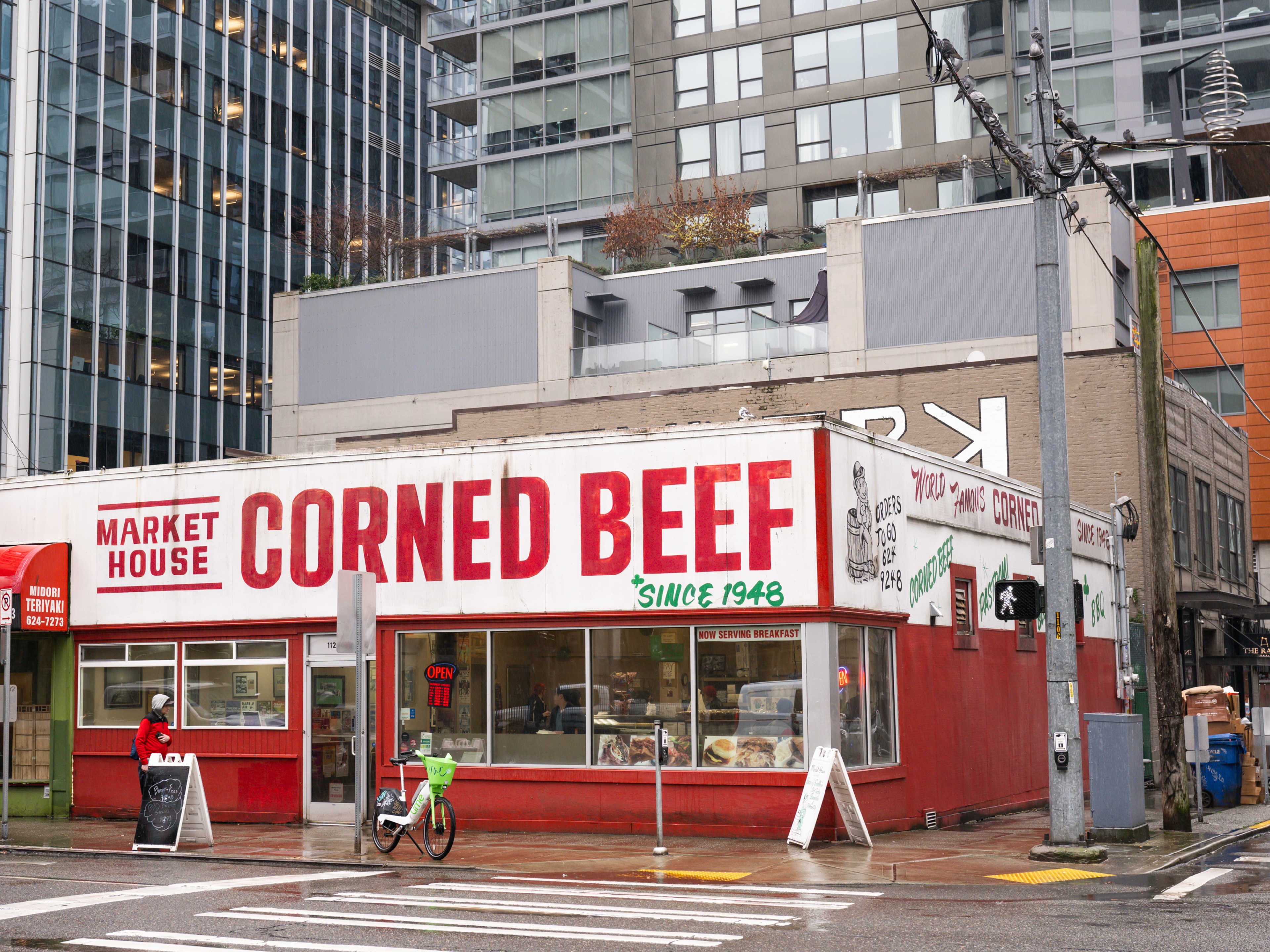 "There are a few signs in Seattle that you could spot with your eyes closed—the giant “CORNED BEEF” above Market House Meats is one of them. Yes, they do in fact sell corned beef here: tender, salty, and thrown into, hands down, the best reuben in town. That's the sandwich you should prioritize, with the ideal mix of crispy edges, soft marble rye containing heaping piles of meat, and melty bites. But the operation is more than just that one meat—it's a must-visit for anyone who takes old school deli lunches seriously." - aimee rizzo, kayla sager riley