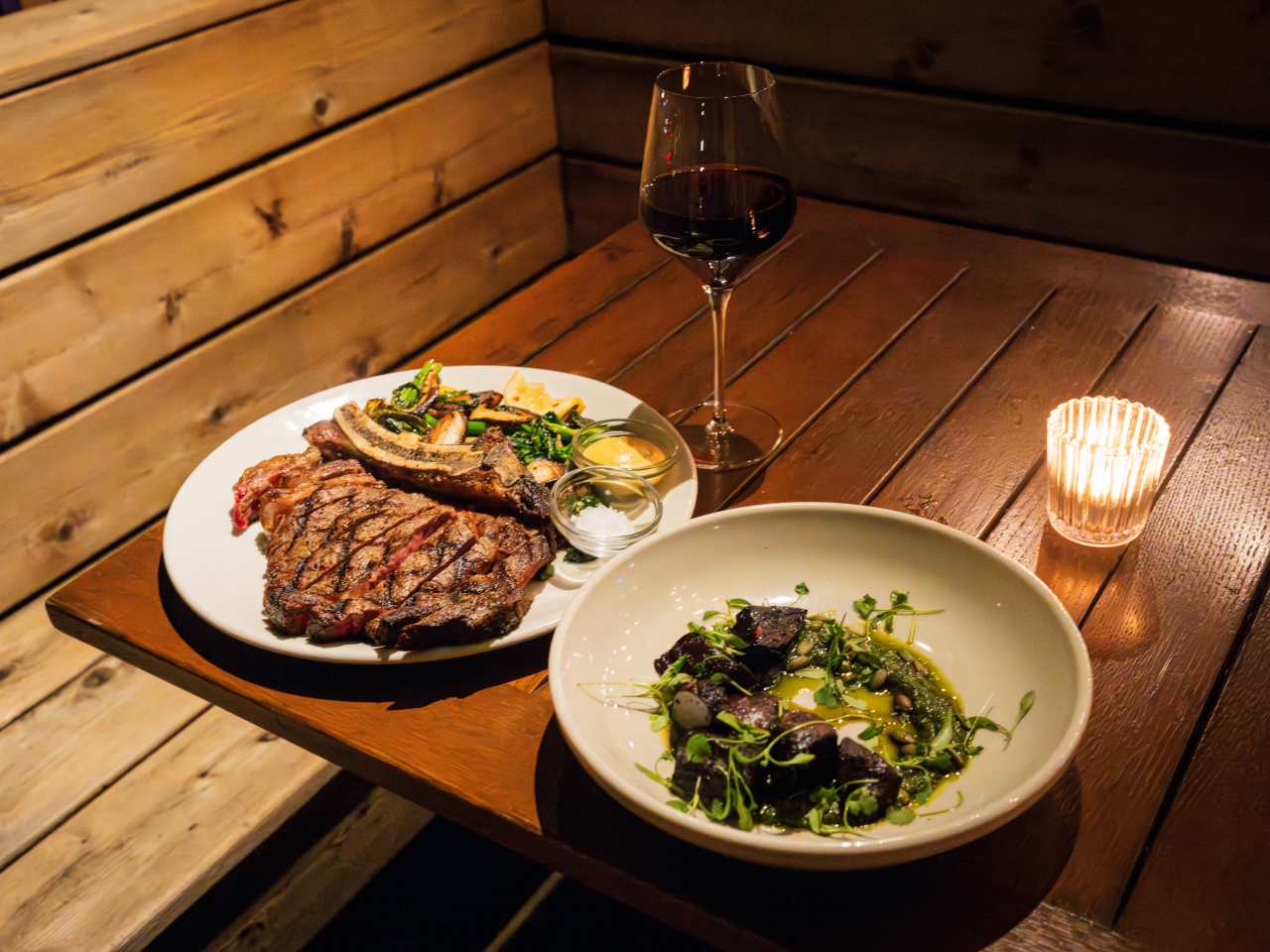 "The first thing you’ll see when walking into Silvia is the roaring fire at the center of the open kitchen. Fire is a recurring theme in the dishes, too, with wood-fired pita, smoked beets drizzled with charred jalapeno chimichurri, and a 14-ounce steak that outshines pretty much every other piece of beef we’ve eaten in the Catskills. Warm lightning and exposed ceiling beams feel very rustic, yet the food itself is polished enough to impress persnickety parents. Don’t forget to order the creamy artichoke soup, which is topped with sunchoke crisps and has the faintest kick of spice." - carina finn koeppicus, hannah albertine, anne cruz