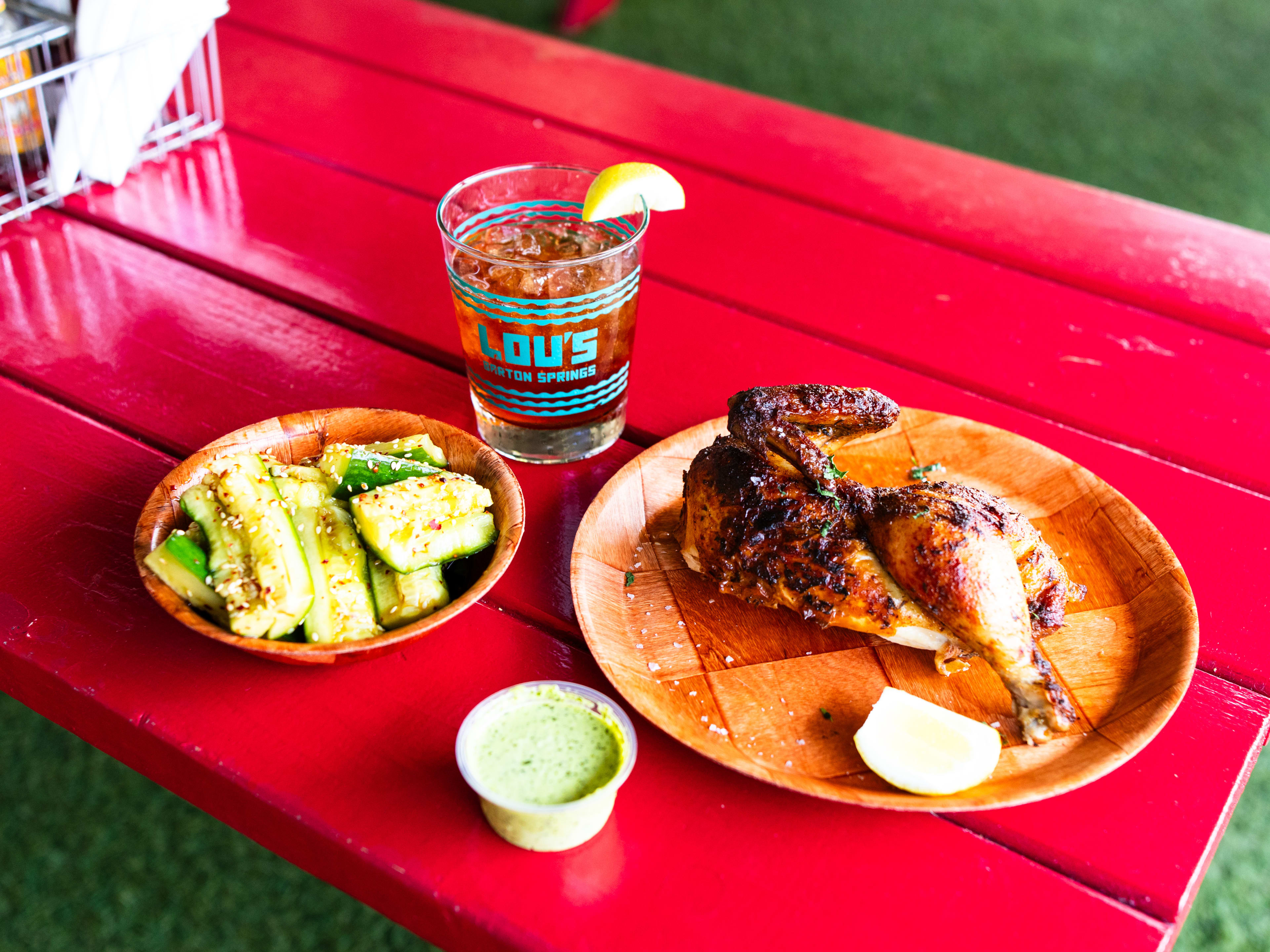 "A slow-roasted rotisserie chicken might not be the first food that pops into your head after emerging from a 68-degree cold plunge, but don’t knock the combination until you’ve tried it. Of course, Lou’s does have more than just rotisserie chickens. There are also burgers, fried chicken, creamy frozen custard, and more. But rotisserie meats are our favorite thing to get here. Start with some smashed cucumbers, order a hibiscus paloma, then prepare to get your fingers messy with a half chicken dipped in jalapeño chimichurri or smoked paprika piri-piri." - nicolai mccrary