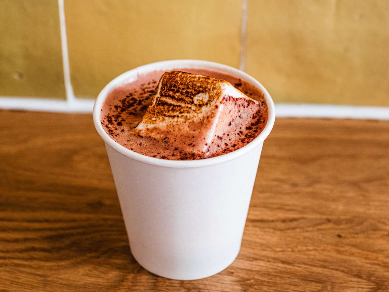 "Why We Rate It: For the XXL blowtorched marshmallow If Goldilocks’ thing had been hot chocolate instead of porridge, she’d have declared the one at Maya’s Bakehouse “just right”. The small Tulse Hill bakery uses 72% Pump Street chocolate and their own sugar-salt blend. But the best bit is the massive marshmallow which is blowtorched until it’s a toasty, bubbling thing of beauty, as you look on, probably clapping and weeping. Maybe that’s just us. There’s not a hint of bitterness and each sip is rich, but still very smooth and drinkable." - rianne shlebak, sinead cranna