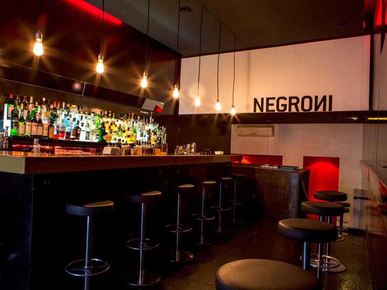 "Negroni is a sultry, sexy bar in Raval where minimalism is king: think black and white walls with splashes of red, undecipherable electronic music played low enough to allow you to whisper sweet nothings to your neighbor, and a single barman who takes time painstakingly preparing every drink. There’s no menu, so make sure you can differentiate between sours and bitters by the time it’s your turn to order. You won’t be disappointed by the tongue-tingling Another Juan with mezcal, lemon, organic spicy ginger syrup, and chili-infused ginger beer, or any of the countless spins on a Negroni. Hone in on the Smoked Negroni made from dry gin, Carpano Antica Campari, and smoky rhubarb bitters if drinks that remind you of a backyard BBQ are your happy place." - Isabelle Kliger