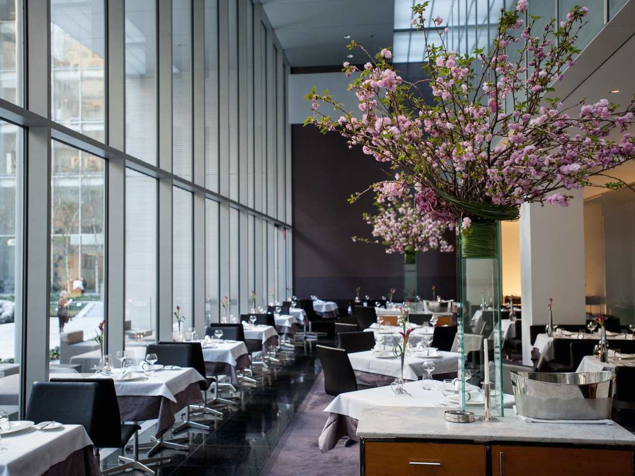 "The Modern is really two different experiences: the bar, and the dining room. The dining room is a beautiful, formal space overlooking the MoMa garden with a three-course prixe fixe menu. It’s fine dining for sure, and it’s incredibly good. The bar area is quite a bit different - it’s more relaxed, with an a la carte menu of share plates. You can get a seat at the counter, grab one of the low two-tops (which are frankly a little awkward if you actually want to eat), or even get a real table - all with the same A plus service as the formal dining room, even if the food isn’t as impressive. But really, this side of The Modern is best used for martinis after the museum, or fancy pre- or post-dinner drinks at one of the only great bars in Midtown. photo credit: Ellen Silverman The bar area is quite a bit different. It’s sleek, more relaxed, and on a good night, you’ll find some Action at the Bar. The plates are smaller and a bit more restrained, but you will still get A plus service and have a decent meal. We like the bar just fine, but what it really comes down to is this: That James Beard award didn’t get handed over for restraint and small plates. Chef Kruether is rocking a new neck accessory because of what’s happening in the dining room. It’s a top notch restaurant, but the bar can be a bit hit-or-miss, and if we’re doing it fancy, Eleven Madison park is more our speed. Food Rundown Hamachi Tartare The bar version of this with some radish and yuzu is fine, but what you want is the tartare in the dining room that comes served with a thin slice of watermelon. That’s where it’s at. Upside Down Tuna Tarte A tuna tartare, but with a thin, crunchy pastry sitting on top. Pretty tasty. Saffron Tagliatelle A nice, delicate pasta, though I expected this to have more flavor than it did. It’s fine, but it’s also an example of why you’re better off spending your money in the dining room. Homemade Alsatian Country Sausage Probably the best thing on the bar menu, this is an incredibly satisfying home made sausage. DBGB, take note. Dry Aged Strip Loin Sliced thin and served over spaetzele, this is an awesome bar menu option. Long Island Duck Breast We had some west coast duck at Eleven Madison Park a while back, and it was mind blowing. There is usually some duck on both menus at The Modern, and you should be eating it. Red Beet Risotto Ok. There is gold leaf in this dish, which is something you’ll see on a plate every once in a while in The Modern dining room. I would normally take this opportunity to make some sarcastic Goldschlager reference, but will skip it this time - just because this risotto is so good. Loup de Mer A really nice, light filet of Loup de Mer, a white fish. This will come with various things on the plate, depending on the season. I think ours had some mushroom action, and maybe a clam." - Katherine Lewin & Chris Stang