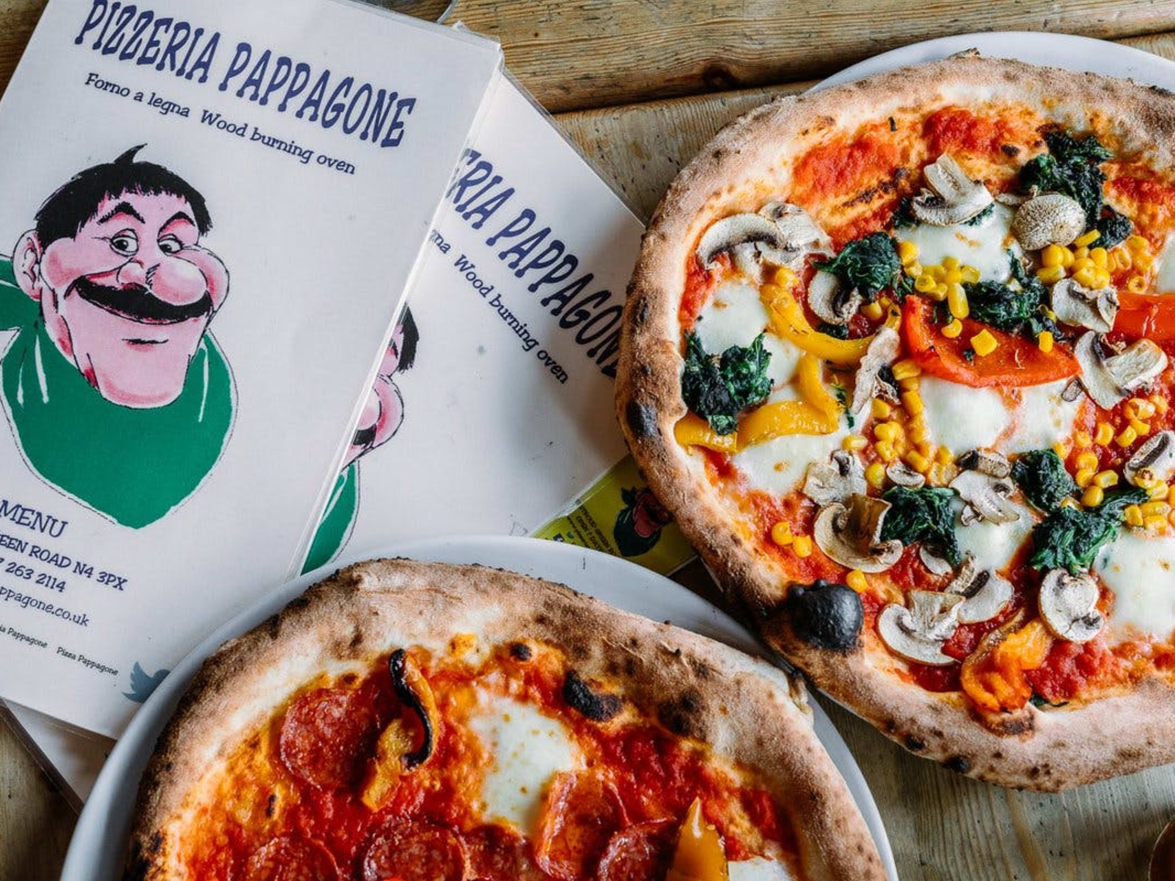 "Another big group and let’s-not-worry-about-working-out-the-bill restaurant, Pizzeria Pappagone is a north London favourite. Their moustached-chef logo has been the face of many a happy evening in Finsbury Park, often starting in their bar next door before moving into the always-teeming dining room for wood-fired quattro formaggis and more. The crisp Roman-style pizzas should be your go-to but if you’re after a pasta or secondi, they’ve got those too. The menu, like everything about Pappagone’s, is pleasing and busy." - jake missing, heidi lauth beasley, rianne shlebak