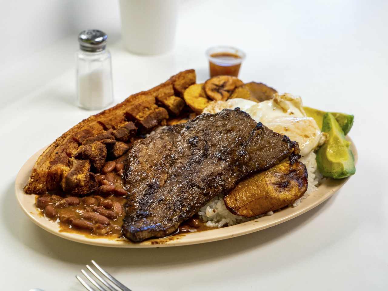 "The Meal: Bandeja Paisa, $15 For $15, just look at all that food you’re going to get: steak, fried pork rind, beans, plantains, rice, avocado, and an egg. Do you have any idea how refreshing that is after paying $25 for a bowl of spaghetti pomodoro? And it’s not just the quantity that’s impressive. That steak is great—thin with just a touch of pink in the center. The plantains go so well with the saltiness of the pork. It’s a really great dish, and more than enough for two people to split, which would, technically, make this dish cost $7.50 each." - Ryan Pfeffer, Virginia Otazo
