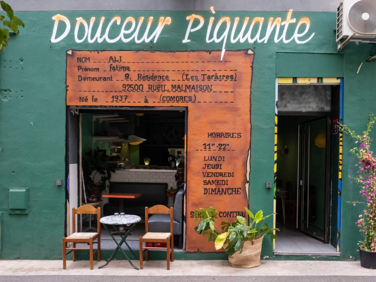 "Having a meal at Douceur Piquante—in a warmly lit dining room with turquoise walls, flowers everywhere, and a mix of vintage formica and dark wooden tables—feels like eating at someone’s house. The chef-owner pairs recipes from Indian Ocean countries and territories like Zanzibar, the Comoros, and Madagascar with Provençal flavors, especially citrus. And she never stops moving: One minute she’s in the open kitchen rolling herbed veal meatballs, frying samosas, or spooning curried broccoli over pilaf, and the next she’s at your side, pouring a lemon-ginger or hibiscus juice while swapping gossip with tables of regulars. The pace here is laid-back, so if you’ve got a packed day, come for lunch on the early side, but try to leave enough time for dessert. In the land of chocolate fondant cakes, the one at Douceur Piquante stands out for its little zip of Espelette pepper." - sophie friedman