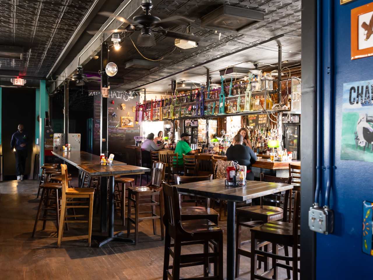 "Don’t judge Chairs by the dark, graffiti-tagged stairway that leads upstairs. This pub-like restaurant is highkey one of the most entertaining hangouts in East Point. We love the pool tables, retro arcade games, tinsel, string lights, and small patio (just order at the bar before heading out). Plus the actual chairs hanging on the back wall is the art situation we never knew we needed. While we like to come for Monday karaoke and Wednesday trivia, any night here is a winner because it’s the kind of place where folks leave their worries out in the car. The crispy fried chicken sandwich served on a bun with tomatoes and lettuce, and the smoked wings, crispy outside and juicy inside, are our favorites here. Pair them with a crisp cider or a punchy Old Fashioned." - jacinta howard