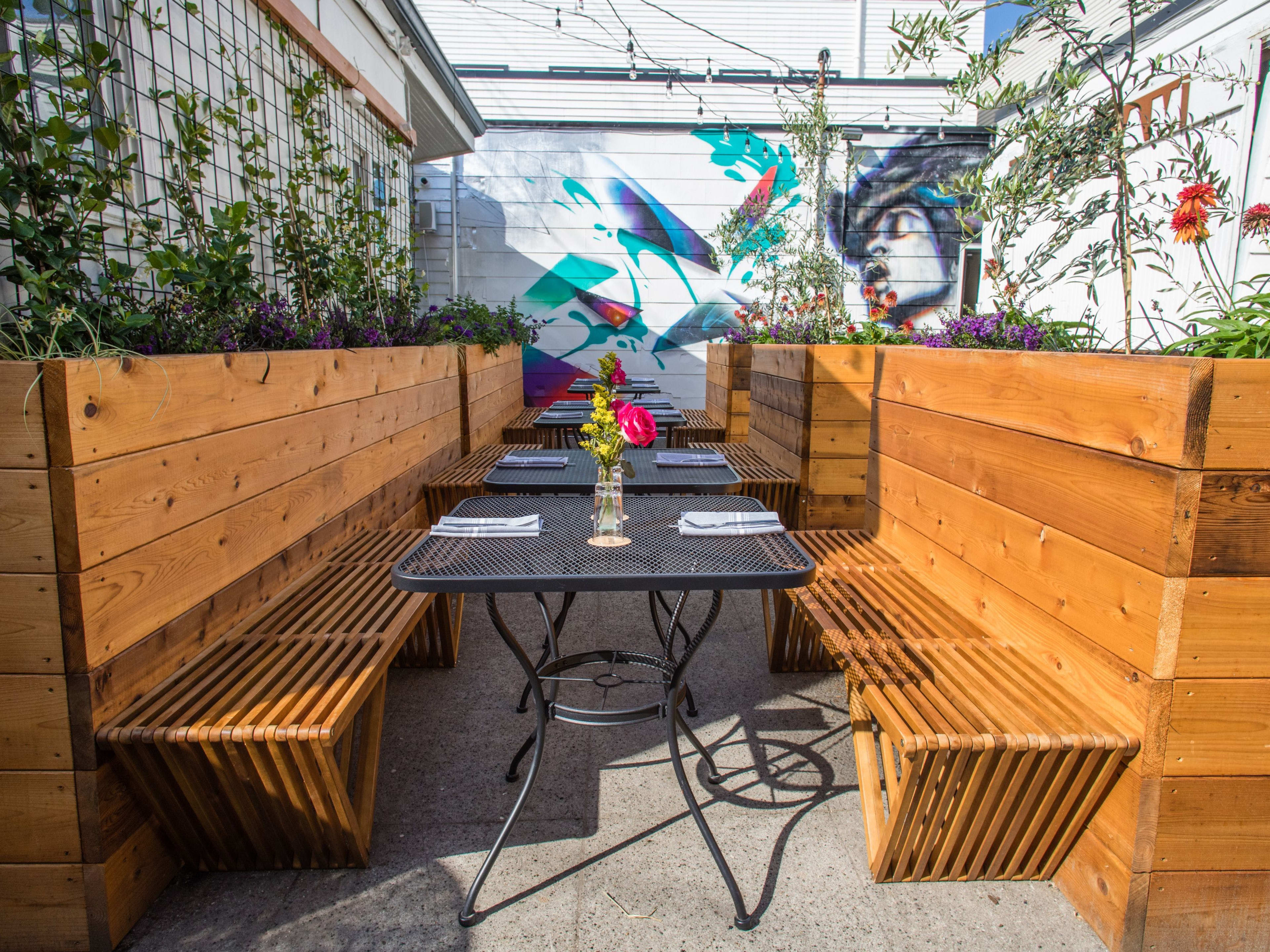 "For a dinner involving cocktails, baguettes with whipped feta, meats and cheeses, and maybe some charred vegetables or crudo, Baker's is a solid place to do that. Especially if the weather calls for being outside in the process. Slither across the narrow bar to their backyard, complete with a colorful wall mural and enough plants to remind you that your own probably need watering." - aimee rizzo, kayla sager riley