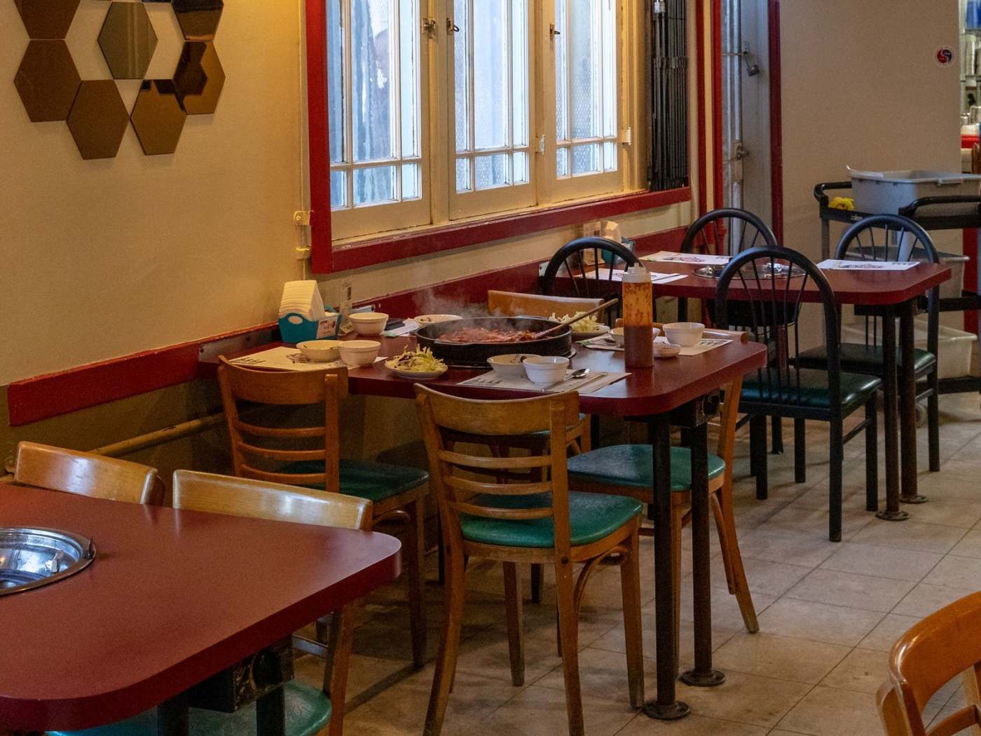 "Mapo Galbi is a run-down restaurant on a boring block of Olympic Blvd., where the staff doesn’t speak much English. Fortunately, all you need to be able to say is DAK GALBI, and you’ll get a chicken stir-fry unlike any other. Each table has an enormous shallow cast-iron pan in the middle, where chicken, rice cakes, cabbage, perilla leaves, slices of sweet potato doused in sauce get cooked together. It’s sweet, spicy, and savory,and a little peppery. It’s also delicious as hell. Give our regards to the fried rice they make with your leftovers." - eric lane