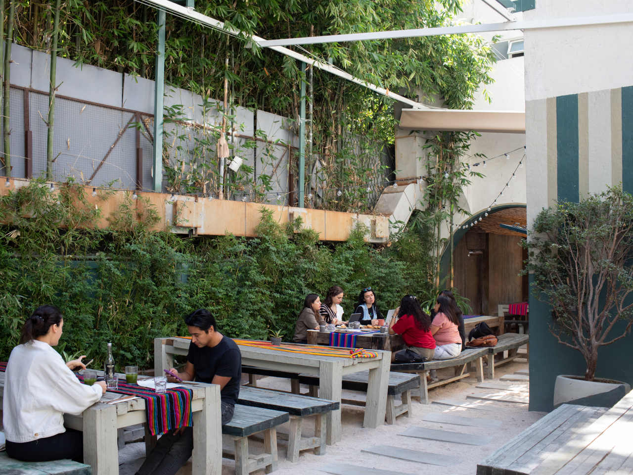 "Blanco Yoga is one of Mexico City’s most popular yoga studios, and it’s also home to one of its most well-known coffee shops, Café Comunidad. The space is huge and divided into three areas: a terrace, a casual interior, and a hidden enormous back patio. There’s a small menu of vegan and gluten-free pastries (the banana cake with oatmeal covered in chocolate and cardamom is a must) as well as bigger plates like their stone-oven pizzas, hearty salads, and baguettes toasted with roasted vegetables. Plan to come by in the afternoon so you can end the day with some vinyasa, then pop back in for a glass of wine, beer, or a mocktail." - Guillaume Guevara