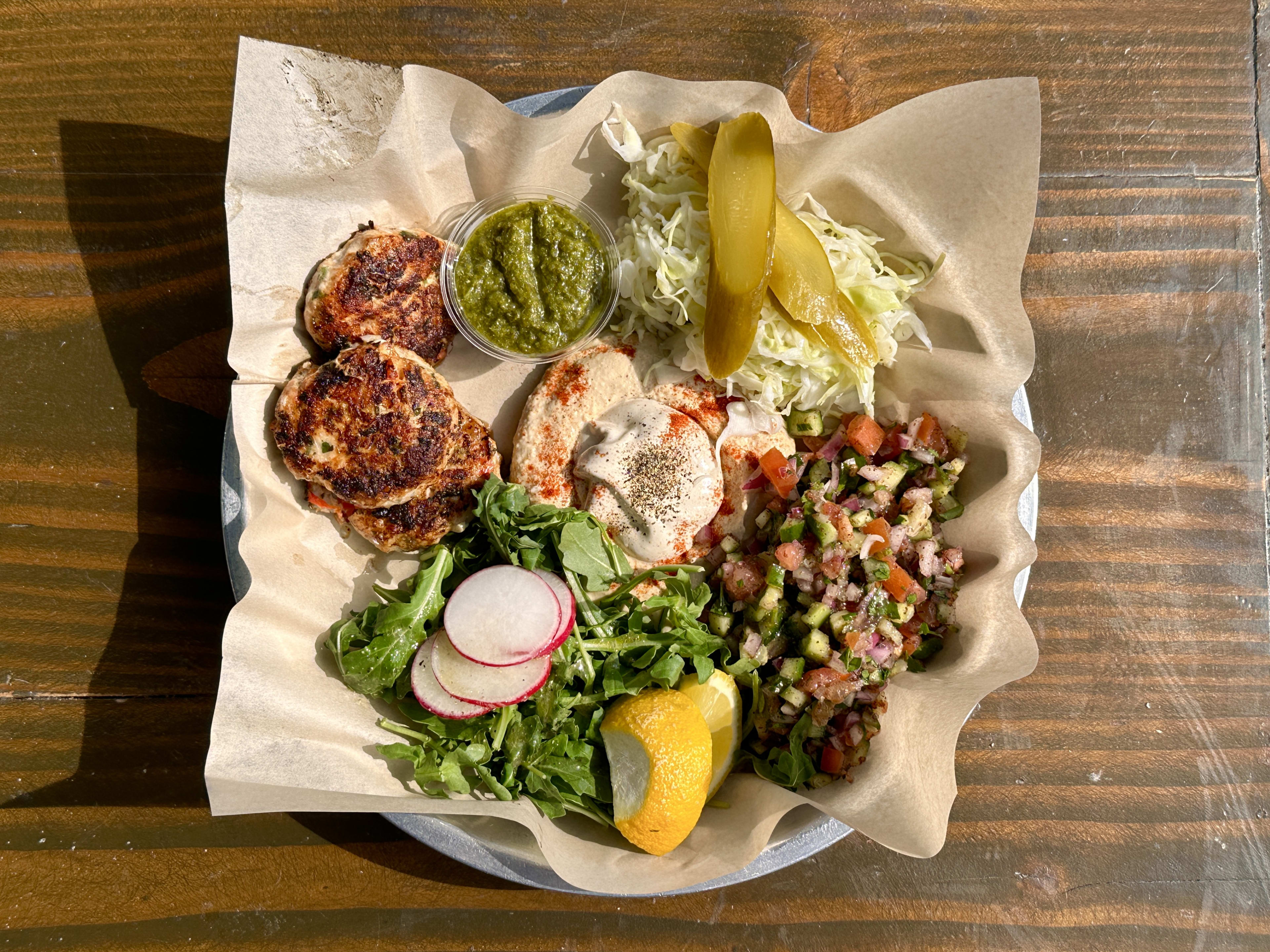 "We know you’re here to learn about where you can eat some vegetables, but, more importantly, do you like an ocean view? Well, this is a spot where you can eat a healthy pescatarian meal off the PCH in Malibu. Pita ‘Bu sets up a few long tables on its front patio, so you can walk up with sand in your trunks and snack on mezze like smooth tahini and smoky baba ganoush that we scoop up with crispy falafel. The fish kabob is more like salmon kofta stuffed with plentiful minced onion and parsley, and the type of light, healthy meal you want after a strenuous afternoon of sunbathing." - sylvio martins, brant cox