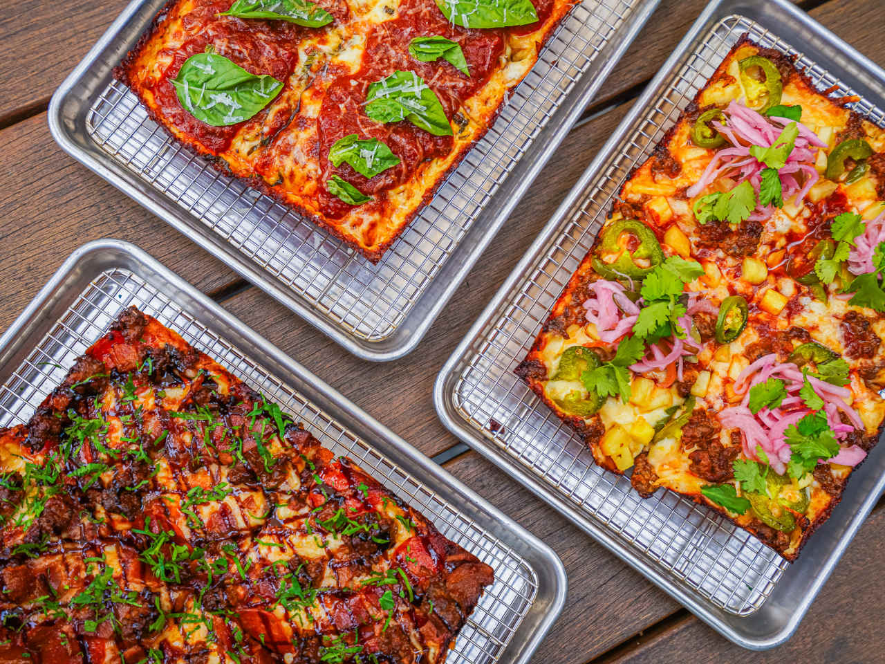 "The thick pan pizzas at this Koreatown spot look like they were designed by a mad scientist with a marinara obsession. The tangy, fermented dough has the springiness of a memory foam pillow, a salty blend of cheeses coats each crusty edge, and fun toppings balance classic with creative, like a whole grilled short rib, gochujang pepperoni, and al pastor sausage. Seven Tigers is run by the Calic Bagel team and shares the same space, complete with free underground parking and a shaded, string-lit patio. Their nighttime pies will piss off purists as much as their bagels, while tasting just as delicious, too. Drop by for an al fresco pizza dinner with friends, draft beer, and natural wine before summer’s over." - nikko duren, brant cox, sylvio martins