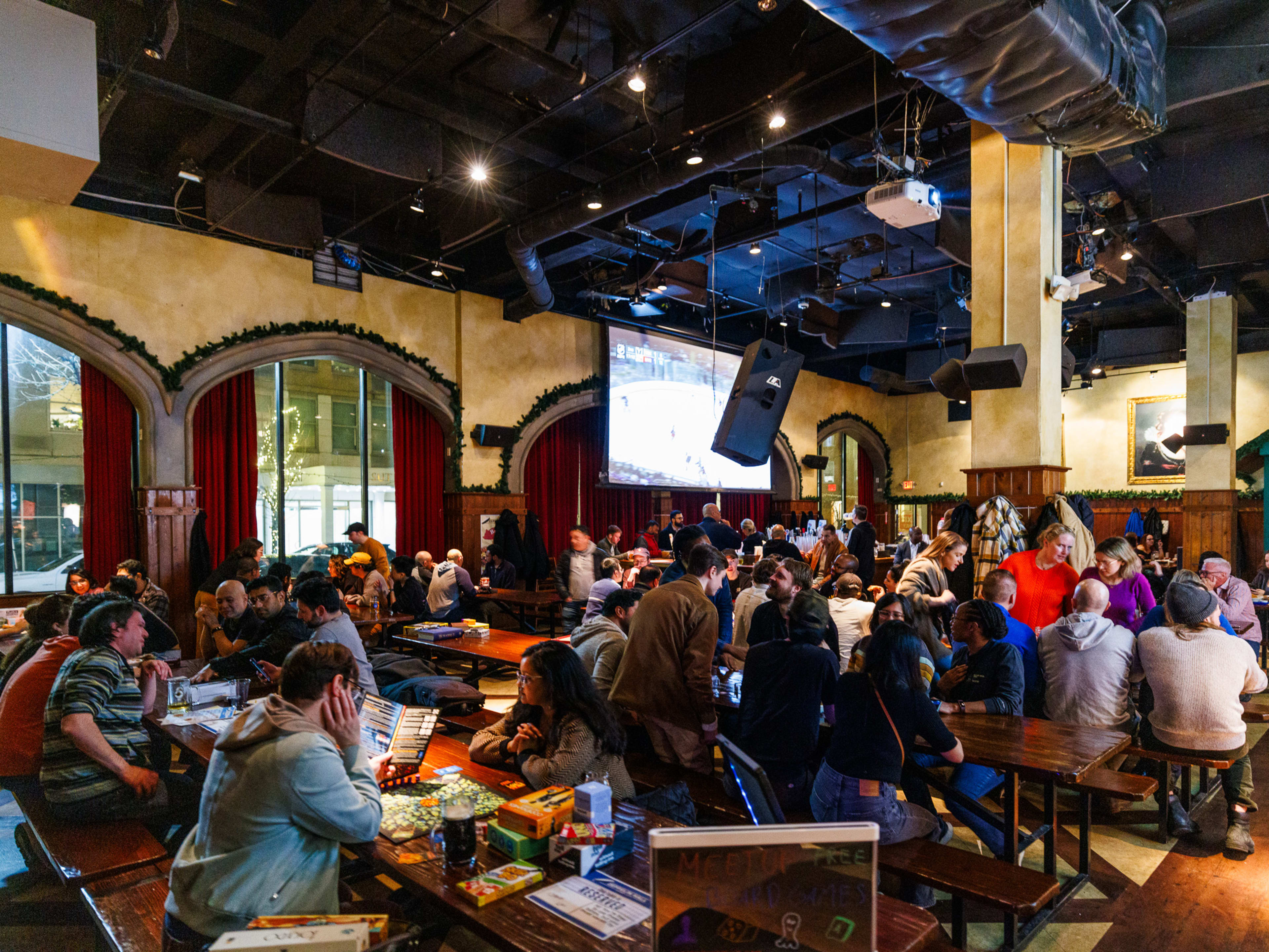 "Zeppelin Hall is the prototypical beer garden. The hangar-sized space has three rooms with multiple bars serving steins of Oktoberfest and Hoegaarden, along with a huge backyard that’s partially covered during winter. Sit at one of the communal picnic tables and you’ll be surrounded by live music, projector TVs playing sports, and six guys from Hoboken getting really into giant Jenga. You don’t need to come here for the food on its own, but the BBQ - especially the spicy andouille and shredded brisket - is a better way to coat your stomach than dry pretzels and overcooked brats you’d find at most beer gardens." - Matt Tervooren