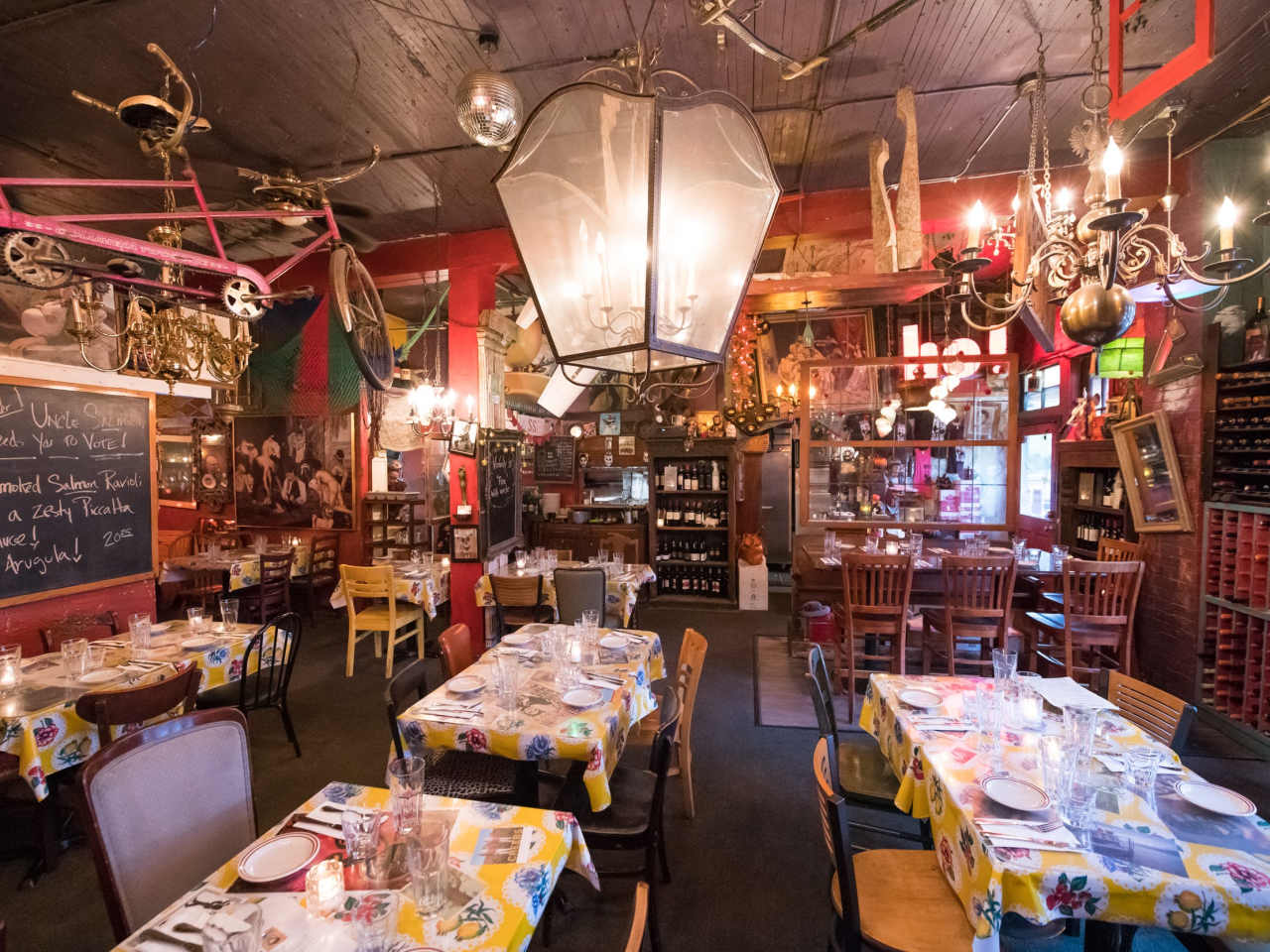 "Bizzarro Italian Cafe is a mysterious place with carnival props hanging from the ceiling and more chandeliers than a Home Depot showroom. Their homemade pastas, like lasagna, baked ziti, and snap pea carbonara, work perfectly within this setting. It’s ideal for weeknight dinners with a big group of friends who won’t mind the bicycle dangling above them or the creepy radio static that plays in the bathroom. Get a glass of red and some pappardelle with mushrooms and sherry cream (a.k.a. The Forest Floor Frenzy) and have yourself a very pleasant evening." - aimee rizzo