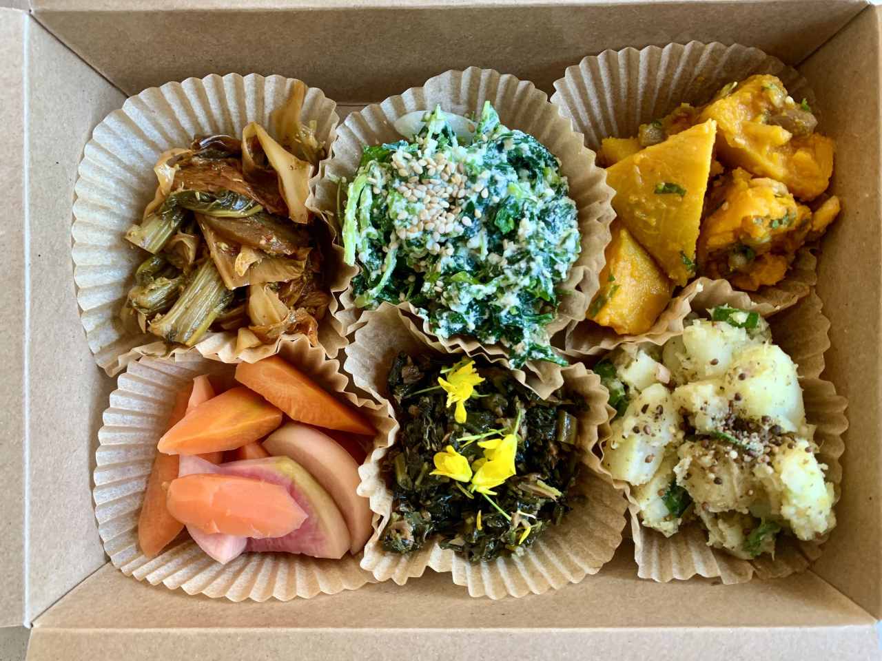 "We now have a spot dedicated to surprisingly creamy tofu and banchan—and it will satisfy even the pickiest Bay Area soybean and fermentation heads. This Korean deli in North Oakland is pumping out seasonal banchan that changes weekly, and is ideal if you like lunches that are refreshing, pickled, and quick. Right now, you’ll find things like kabocha squash with toasted seeds, dooboo and wild nettles, and potatoes with green garlic and leeks. Whether you get the four- or six-banchan pack, get some extras to round out the meal: rice, a cup of ginger-soy-sesame sauce, and some tofu they make fresh each day. Devour it at home or at a table outside, and repeat for lunch next week. Joodooboo is operating on limited hours and with a limited menu, but they already have us hooked." - Lani Conway