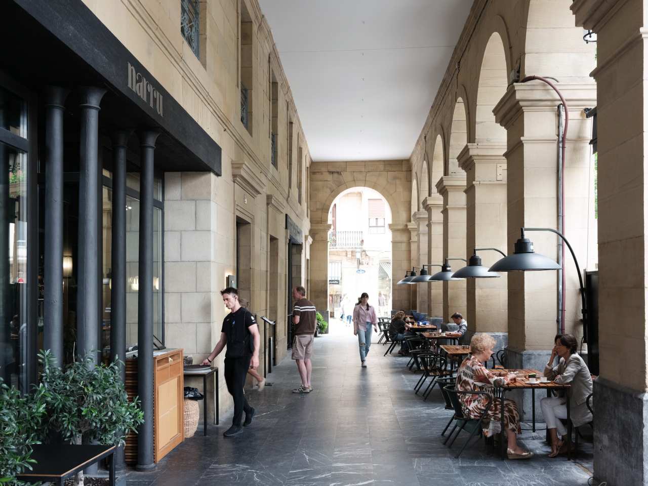 "The outdoor setup at Narru is exactly where you want to be in the nicer months: under the column-lined arcade looking out on the Buen Pastor cathedral, eating seasonal and simple-but-well-executed dishes, and among a buzzy crowd where all the locals go to see and be seen on the weekends. Even if the phrase “cod chin” feels like an oddly specific insult, don’t let that prevent you from trying some of the city’s best kokotxas, served in three styles: sauced, battered, and pil pil. The highlights of the menu are when they let the fancy ingredients shine, so try the oysters topped with an apple vinaigrette and the oxtail ravioli served with foie gras and shaved black truffle." - marti buckley
