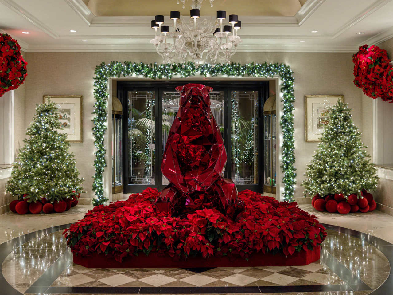 "The Four Seasons Beverly Hills turns into an all-out Christmas Wonderland for the holidays. It’s worth stopping by this iconic hotel just to roam the wreath-adorned hallways and gawk at the oversized bouquets of poinsettia. And if you’re thirsty after, head to the lounge. The space has been transformed into an old Hollywood speakeasy/piano bar through January with holiday-inspired cocktails, a roving martini cart, and (for some reason) live cigar rolling." - Brant Cox