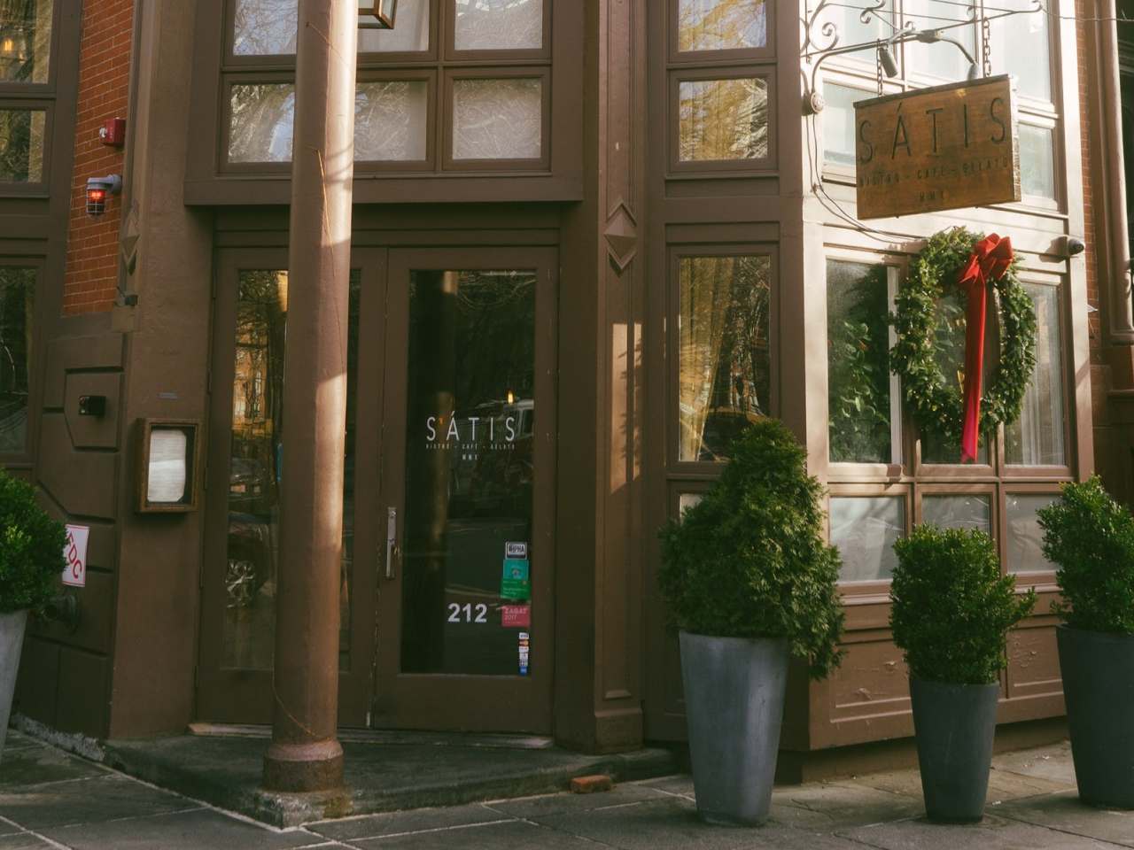 "Satis looks like a converted loft you might find in Brooklyn Heights, but the high-ceilinged, brick-walled bistro is on a quiet street in Paulus Hook. You don’t need to eat here and spend $18 on a small portion of bland cacio e pepe, but keep the attractive space in mind for a glass of wine on a weekend afternoon or during Happy Hour, which is offered everyday from 4-6pm in the bar room next door." - Matt Tervooren