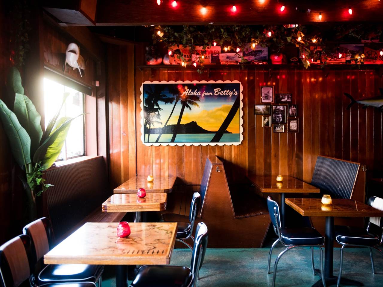 "The Sunset is a music venue that hosts mostly local artists, but we’re here to talk about the front bar area, which goes by “Betty’s Room.” Even though lamps are blaring and guitars are screeching next door, Betty’s Room is a calm dive to grab a few beers or well drinks with friends. The whole space is decorated with vintage board games and red lighting, and the best part is that your eardrums will be safe." - aimee rizzo