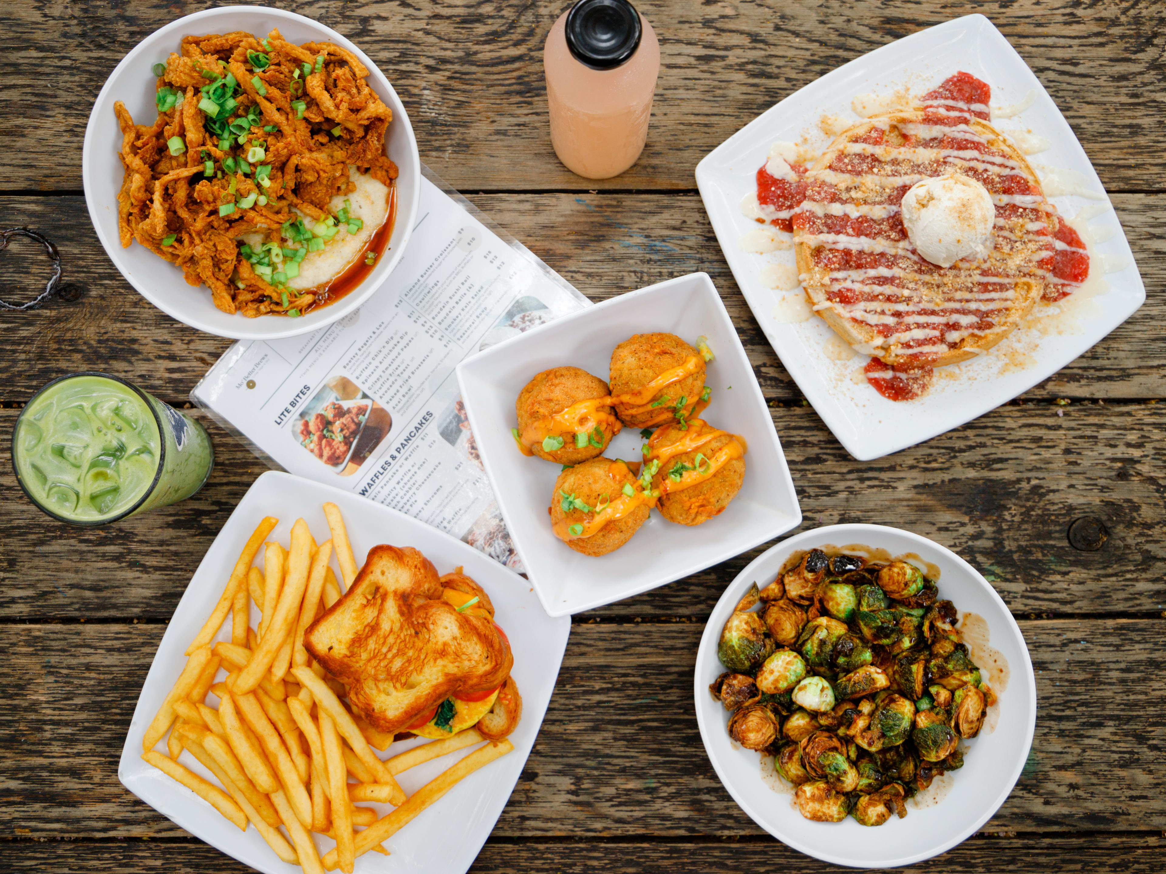 "If you prefer your brunch and cold brew with a side of blues vinyl records for sale, then the vegan cafe Mo’ Better Brews in the Museum District is where to go. This place serves brunch daily, and on most days, people will be dining on the adorable tree-lined patio. Mo’ Better Brews’ menu is long and strong—so you can have a crispy boudain sushi roll, fried mushrooms doused in hot honey, and a vegan breakfast sandwich with donut buns (and powdered sugar, of course) all in the same meal." - gianni greene, chelsea thomas