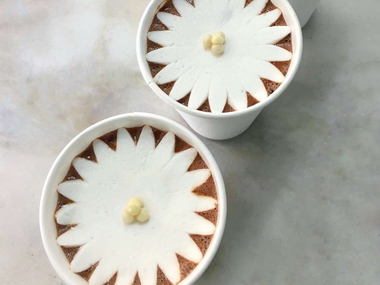 "Picking up a cup of hot chocolate from Dominique Ansel in Soho is a whole production. There's usually a line outside that’s full of tourists and loyal fans, so you’ll probably have to wait a bit to enter the narrow cafe. When you make it inside, be sure to order the blossoming hot chocolate. It comes with a marshmallow “flower” that opens on it’s own and melts into your cup as you drink." - will hartman, carina finn koeppicus, nikko duren, bryan kim