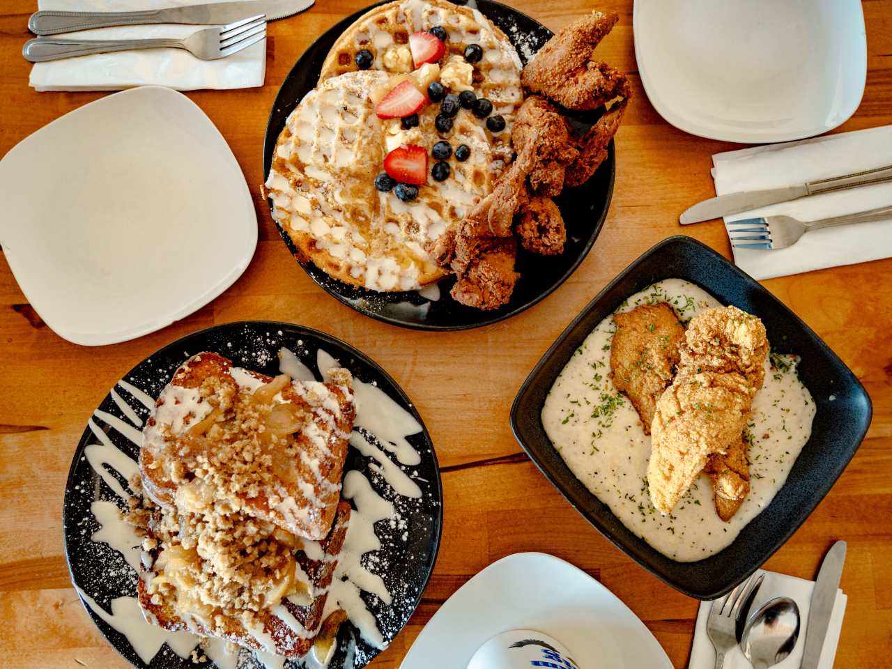 "Although its name sounds bad food podcast, Fishtown Sunrise Social is pretty solid. They make good sweet potato pancakes, french toast apple cobbler, and everyone sings along to Lauryn Hill between sips of lemonade. Plus, the place is open every day except for Monday. So you don't have to wait until the weekend to make the hard choice between crab, shrimp, and fried fish gumbo over grits or a cheesy short rib omelet large enough for three. photo credit: NICOLE GUGLIELMO" - Candis R. McLean