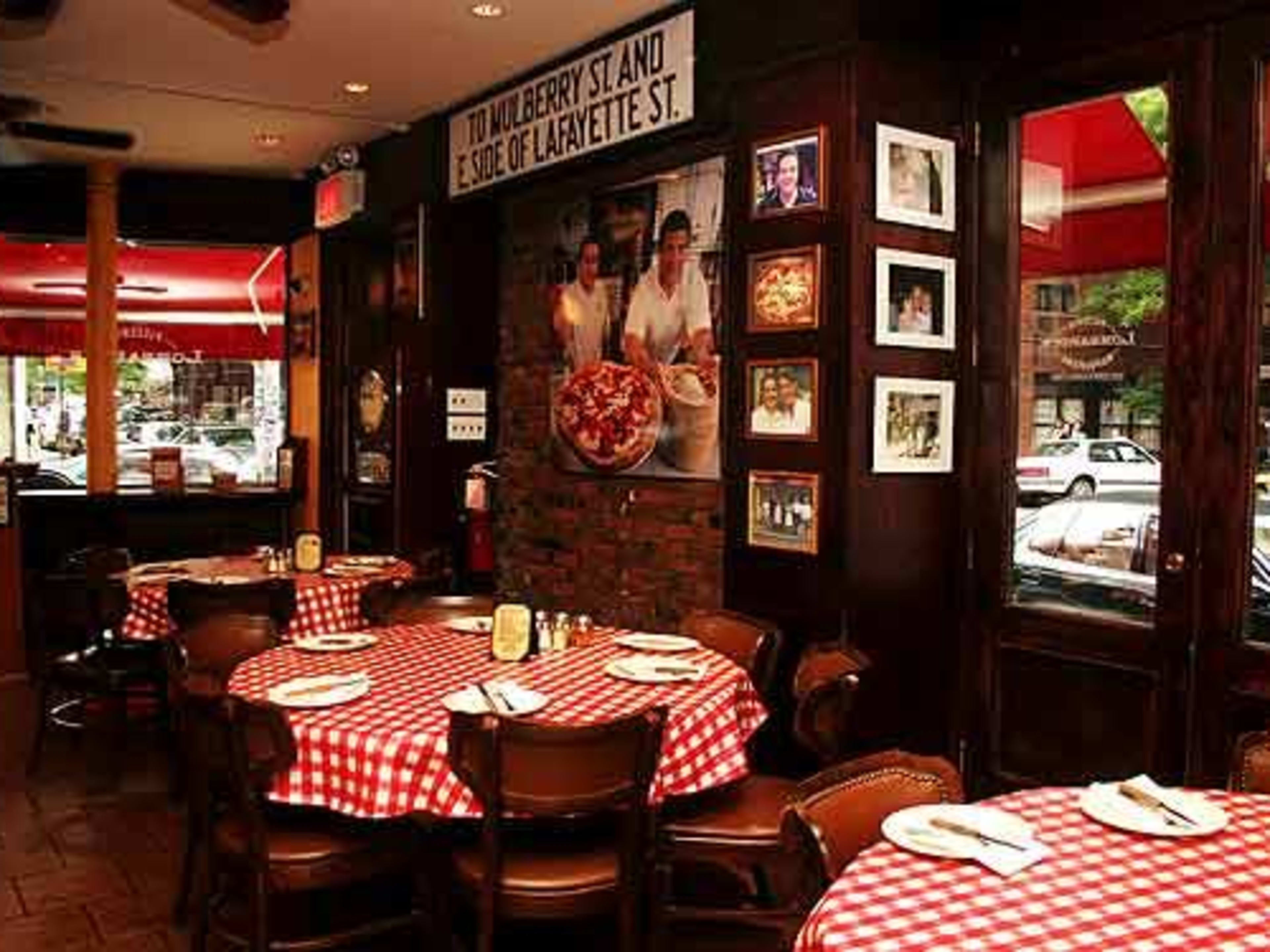 "The self-proclaimed "first pizzeria in America," Lombardi's has long been at the top of the list for tourists looking for a taste of real New York City pizza. Rightfully so, as this Neapolitan style coal oven pizza is top-rate. Unfortunately, to get a taste you'll have to wait in line behind the gaggles of people being dropped off by the double-decker bus load. The room is Little Italy meets The Olive Garden, and the staff in front sport headsets, which must help keep the place from falling into chaos ... that or it makes the guys eating with their Bluetooth earpiece in feel a little more at home. Either way, it's worth making the trip and waiting it out every once in a while. A word to the wise, don't sleep on the clam pizza. And make sure you don't get any sauce on your foam Statue of Liberty crown. Food Rundown Genarro's Original Pizza In our opinion, the true test of a New York City pizzeria is its margherita. Lombardi's standard pizza is very good, with a mild and well balanced tomato sauce, fresh mozzarella, and basil. The char on the crust is perfect. White Pizza No red sauce, just mozzarella, romano, and ricotta cheese, along with herbs and garlic infused olive oil. A decent pie, but we like us some red sauce. This is a solid move if you are with a big group and are ordering more than two or three pies. Make this the third or fourth on the list. Clam Pizza Only a few places in New York City have a clam pizza on the menu. It was invented in New Haven, CT and Lombardi's now has one of their own. No sauce, no mozzarella cheese - just clams, olive oil, garlic, a little romano cheese, and delicious coal oven crust." - Chris Stang