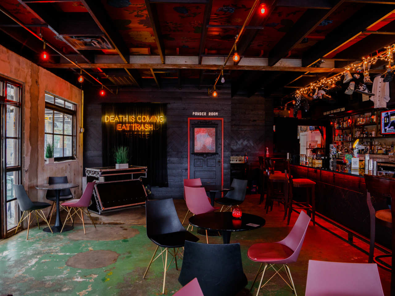 "A few other places understand the importance of a good late-night meal like Trash Panda Drinking Club in Northside Village. The inside of this divey bar is tiny, painted black, and barely lit, outside of a few red lights hanging over the bar and neon signs inviting you to “eat trash, be free.” While we wouldn’t call crispy glazed brussels sprouts and quesabirria tacos with eye-watering jalepeño crema sauce trash, we have shoveled these dishes in a way that would make local raccoons proud. And after hanging out there for a few hours, we understood all of the trash panda enthusiasm." - chelsea thomas, gianni greene