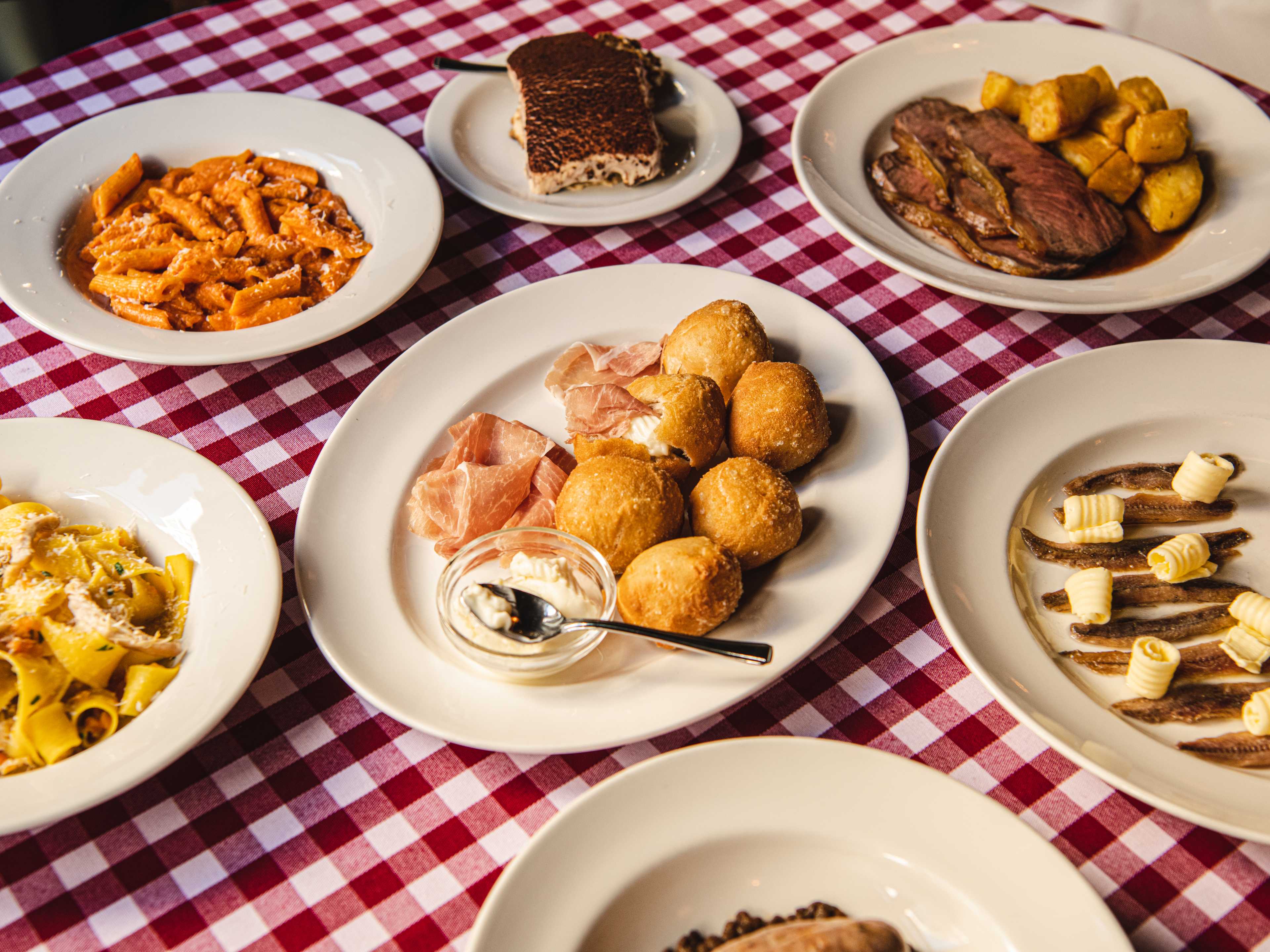 "This trattoria around the corner from Farringdon station is so comfortable in its own skin, it imparts a natural feeling of scialla into all its diners. A birthday celebration at Brutto should start at lunchtime, end at closing, and feature more £5 Negronis than you have fingers. With mahogany tones and gingham tablecloths topped with bowls of vodka penne, this room feels like Tuscany through Frank Sinatra’s eyes. Look, this isn’t New York. Nobody wants to eat dinner at 10pm, so get organised. Reservations are released 14 days in advance at 9:30am and, if that doesn’t come off, push notifications for cancellations are recommended. That said, Brutto’s bar is one of the best around. Walk in and linger with a Negroni." - jake missing, rianne shlebak, sinead cranna, heidi lauth beasley