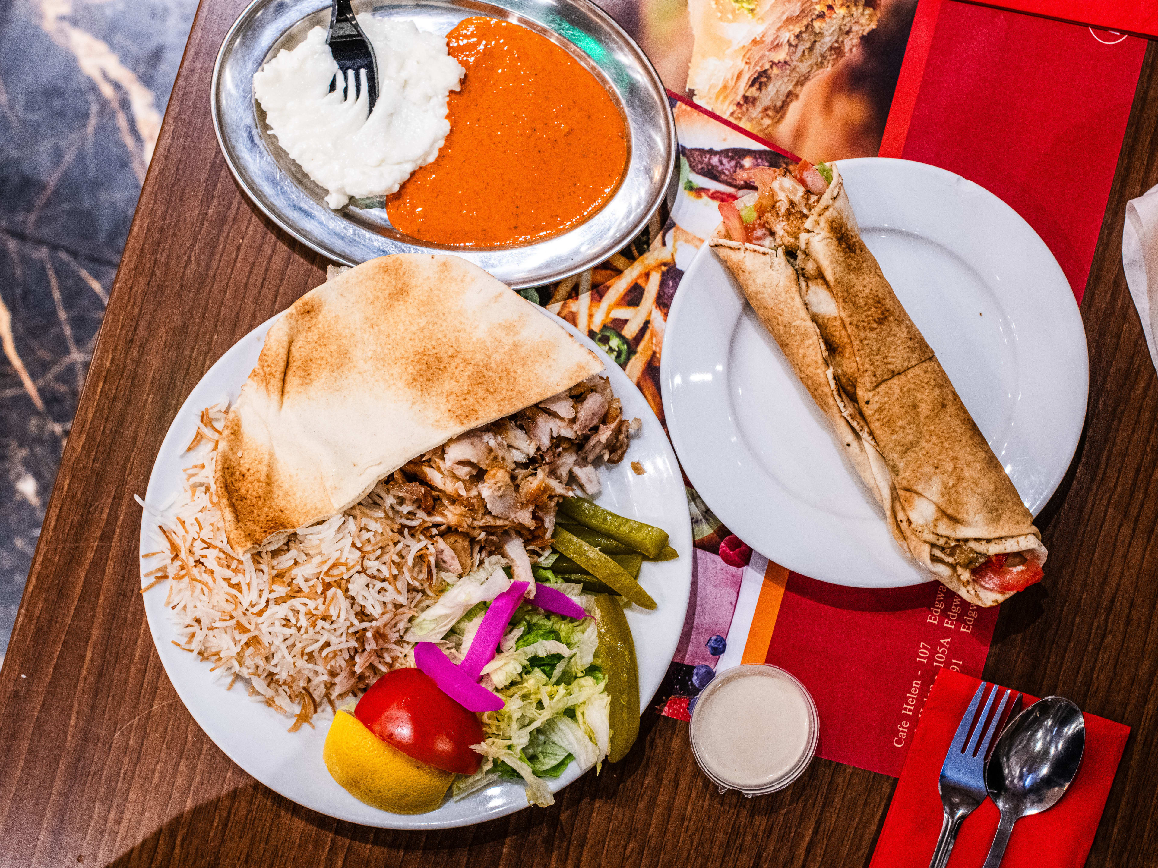 "Until 5am on weekdays, 6am on weekends For shisha obsessives and shawarma lovers, this Lebanese spot on Edgware Road is a west London institution. The red glow of Cafe Helen’s signage is a siren call for anyone needing comfort late at night or early in the morning. Be it baskets of warm flatbread and bowls of creamy labneh, or piles of dripping shawarma meat with a mound of rice. There’s plenty of seating but swing by the takeaway shop next door too." - jake missing, sinead cranna