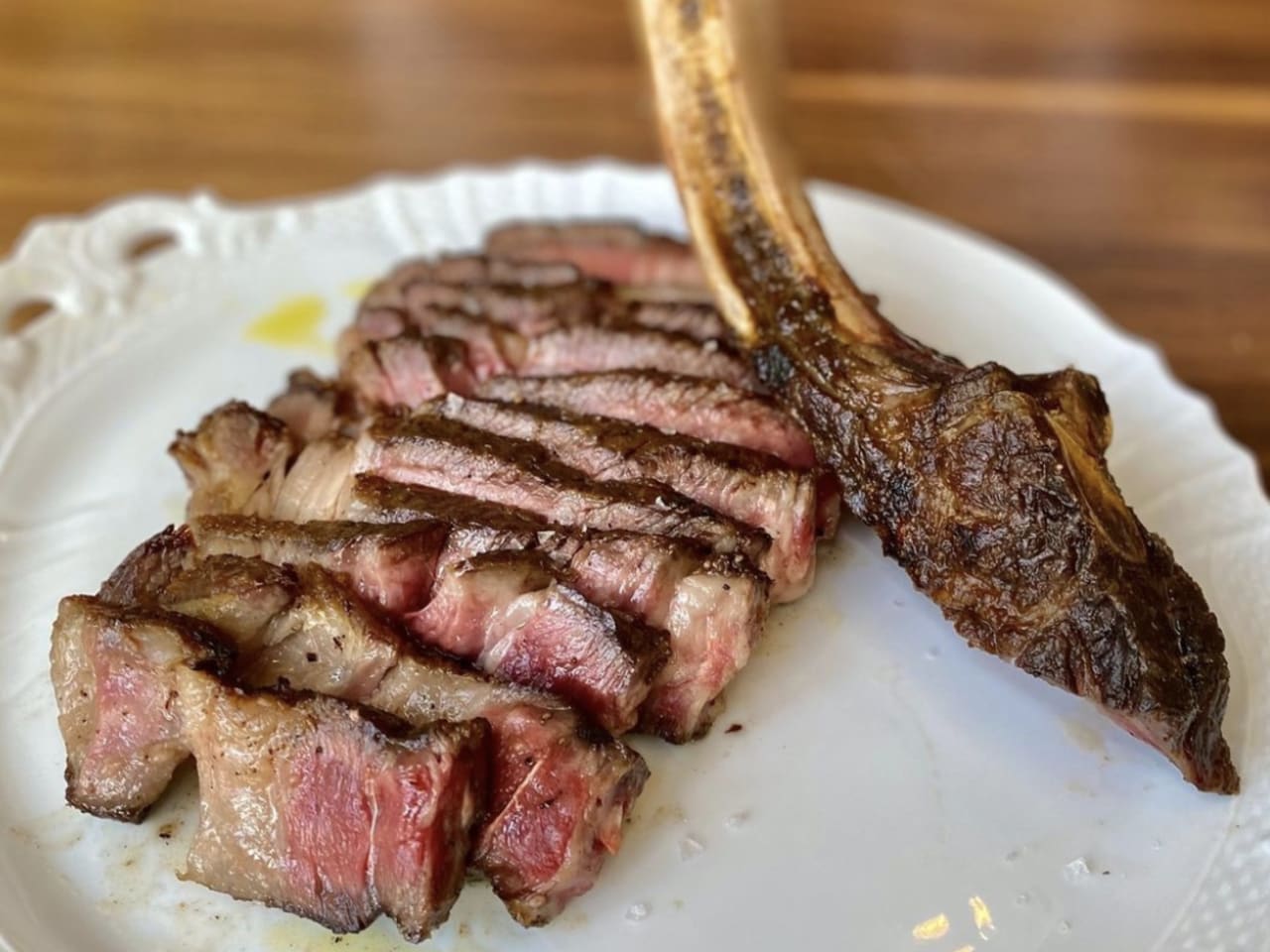 "Marc Vetri’s Fiore Rosso–a gorgeous and sprawling Italian steakhouse in Bryn Mawr–should be a masterpiece. After all, it’s in the same restaurant empire as Fiorella and Vetri Cucina, two of our highest-rated restaurants. Well-dressed couples and colleagues dine in front of countless works of art lining the walls, including a Miró and a Picasso. The Somm’s Selections of wine start at $200 a bottle, and you can easily spend that much per person. But somehow, Fiore Rosso evokes more Cheesecake Factory than Vetri Cucina. Opposite the Picasso, ESPN flashes on a big screen TV for a few after-work guests with beers. The menu is extensive, but most dishes are unremarkable. The crudo is melt-in-your-mouth tender, but flavorless. The maitake mushrooms are underseasoned, but float in a delicious parmesan custard and prosciutto brodo (you’ll need to slurp, since you’re not given spoons). All of the pastas arrive cold, and while the carrot anolini and jumbo lump crab-stuffed crespelle are beautiful, the sauces are forgettable. Perhaps the most disappointing part is the steaks–both the wagyu rib cap and the exorbitant Bistecca alla Fiorentina arrive purple-raw and inedible. While the staff is knowledgeable and extremely friendly, details like clearing glasses and empty wine bottles are overlooked. A server did, however, recommend a four-course meal deal at a different restaurant. Unfortunately, we do, too." - Alison B. Kessler