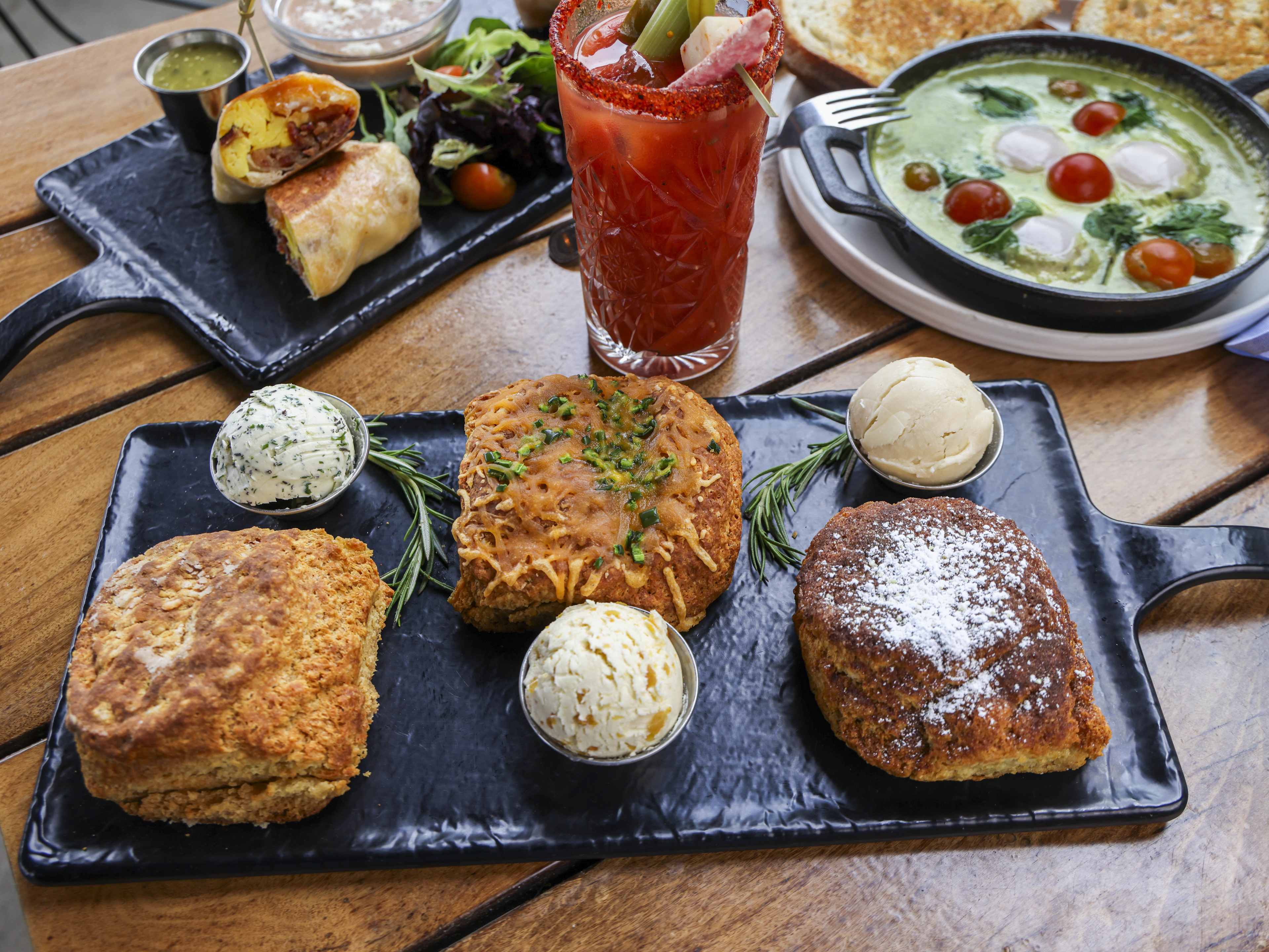 "Ocean Beach’s OB Surf Lodge is the neighborhood favorite where surfboards hang from the ceiling, pups chill on the patio, and the wetsuit-wearing crowd come in for a bite after hitting the waves. There are a lot of great breakfast options, but nothing beats the huge, flaky biscuits. The biscuit board includes plain, churro, and jalapeño cheddar, so you can try a combination of flavors before slathering them with spreads like whipped maple or rosemary-thyme butter. For something less carb-loaded and packed with protein, the Surfside Power Bowl with salmon or seared ahi is great before some beach volleyball." - Sabrina Medora