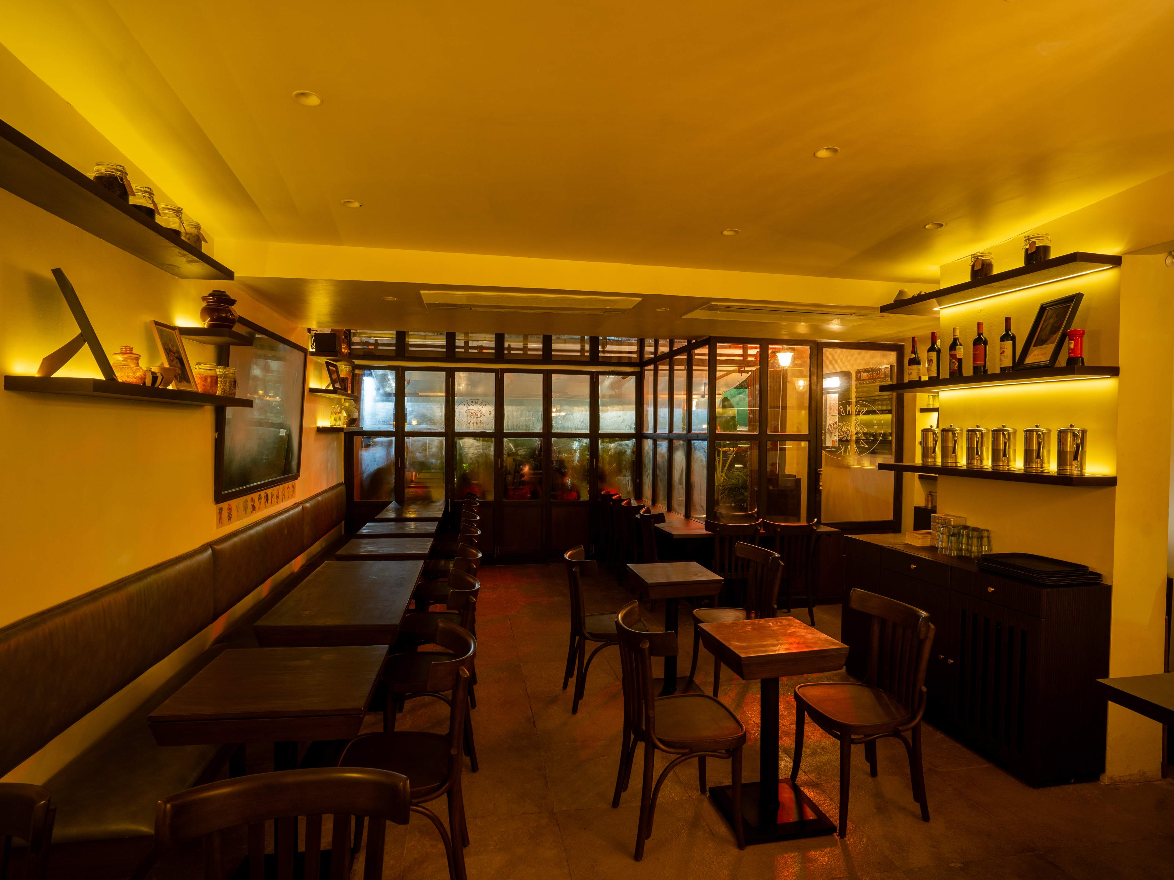 "In India, each state and region has its own local drinking culture and accompanying snacks. Bombay Daak, from the Ekaa team, attempts to celebrate them all. This music-and chatter-filled, dive bar-inspired Bandra West restaurant brings in the flavors of daaru-chakna (booze and munchies) from Coorg to Kashmir, Nagaland to Jaipur, Bihar to Goa—you get the drift. Turn on auto-Shazam to borrow the bouncy playlist before taking your free shot of bird-eye chilli wine. We follow ours with a Santra Season that’s infused with pickles and chutneys, and then dig into the artful, soul-curing sharing plates. Our standard order: The Hot Gram with three types of pulses, peanuts and pineapple, Bhuna tongue roast with brown onion emulsion and fresh dill, delightfully cartilaginous chicken and rasam, housemade Luncheon Meat in a retro spam tin, and the Tamil-inspired pairing of condensed milk and crustaceans in the Milkmaid Prawns." - Roshni Bajaj Sanghvi