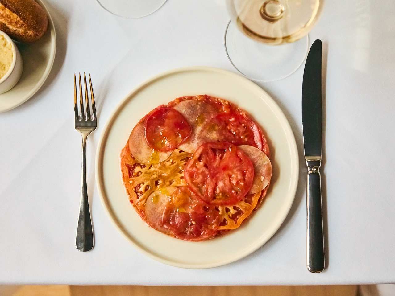 "Field Guide, near Domino Park in Williamsburg, can’t get out of its own way. It’s got all the bones of a great, seasonal restaurant (Eleven Madison Park alum, giant still life of produce over the bar), but in general the food is overtouched—to the point where it’s mostly not very pleasurable to eat. Why serve a difficult-to-execute trout roulade with shaved raw mushrooms, smoked roe and and beurre blanc—all jangling incoherently—when a piece of gorgeously grilled fish would do the job? Things start out well, with the complimentary bread course, which comes with citrus-spiked “meadow butter.” And there are some good bites along the way—like a pork and pistachio terrine with enjoyably sharp bursts of house-made mustard. The service is kind and welcoming, there’s an extensive wine list, and the kookily named cocktails (Nothing Grows In Comfort, I Like To Be An Optimist) are solid. But unless you’re feeling exceptionally indulgent towards bold pairings (tomato and apple, chicken breast and sourdough) that have a roughly 66% success rate, there are other places in the area to eat some plussed-up seasonal vegetables. Food Rundown Bread & Butter The first instance of citrus on the menu, and the best. The cornmeal and sourdough rolls come out hot, and the butter is spreadable—nay, dunkable—and full of orange zest. photo credit: Will Hartman Pork & Pistachio Terrine This is worth an order. The terrine is well-constructed and rich, served with two different types of mustard, and gorgeous ripe figs. photo credit: Will Hartman Tomato And Apple Light, crisp, and refreshing, this dish of thinly sliced tomatoes and apple is unusual but effective. The experiment is simple, and it works. Save some bread to swipe up the grated tomato layered underneath the slices. photo credit: Will Hartman Butternut Squash Rillettes For this dish though, the whole is less than the sum of its parts. There’s perfectly poached butternut squash, excellently steamed clams, crunchy bacon, and salty smoked gouda. But together, they're incoherent and overly salty. A butternut squash and clam chowder might have been more satisfying. photo credit: Will Hartman Gulf Pink Shrimp This dish feels like suddenly coming across a Lana Del Rey song on a Death Grips album. Consisting of a few nicely poached shrimp, with segments of grapefruit, chiffonaded mint, puffed buckwheat, and blanketed in a rooibos gelée, it feels out of sync with the rest of the farm-centric menu—though it’s a fine dish if you just want some shrimp. photo credit: Oliver Jevremov Pork Loin A big hunk of barbecued pork loin that suffers from size. Your first bite will be juicy. Your second bite, less so. And so on. You don’t need to order this, though the corn purée is excellent. photo credit: Will Hartman Trout If a restaurant claims Upstate New York roots—as Field Guide does—the trout dish needs to be gangbusters. This is an overly-cheffy roulade of trout, rolled in cabbage leaves and topped with shaved porcini mushrooms. The smoked trout roe doesn’t add anything, and neither does the Hefeweizen beurre blanc. Skip. photo credit: Will Hartman Roast Chicken In this single chicken breast ($34), the bird is cooked nicely, but there is an inexplicable layer of sourdough “stuffing” between the skin and the meat. It’s underseasoned, soggy, and has the texture of wet sand. photo credit: Will Hartman" - Will Hartman
